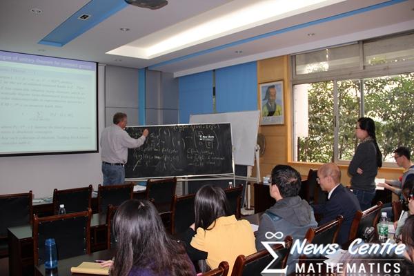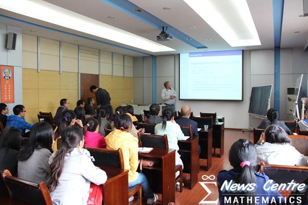 报告会上半场Marcel de Jew 教授讲解了关于泛函分析中Banach 格的问题。听完报告,大家踊跃提问,Marcel de Jew 教授耐心的回答了同学们的问题。 报告结束后,学生们还向Marcel de Jew 教授咨询了在莱顿大学攻读博士学位的有关事项。