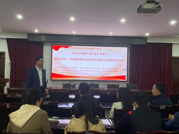 教工信息与计算科学系党支部书记何星星老师和教工统计系党支部书记乔高秀老师分别分享了党建工作经验与专业建设情况等,也邀请各学校的老师们能够到交大来交流合作。