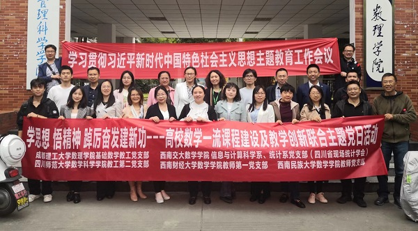 教工信息与计算科学系党支部、教工统计系党支部联合四川师范大学数学科学学院教工第二党支部、成都理工大学数理学院基础数学教学教工党支部、四川省现场统计学会党支部于2023年4月22日在成都理工大学数理学院举行了“学思想 强党性 重实践 建新功——高校数学一流课程建设及教学创新联合主题党日活动。该主题党日活动依托“第二届高校数学一流课程建设及教学创新论坛”举办,研讨会由成都理工大学数理学院基础教学部党支部书记舒畅主持。91暗网