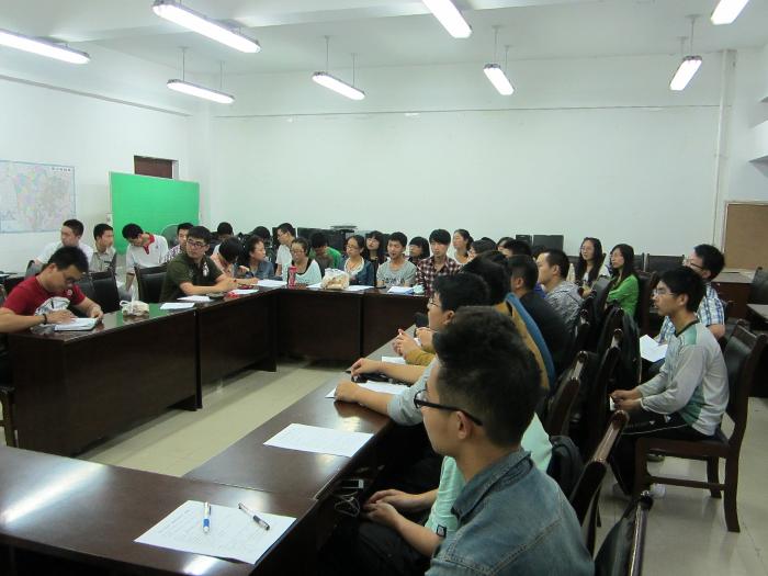 在会议接近尾声时,黄燚学长对整个班会做了总结并对考研给出了自己的建议以及身边案例的分析。