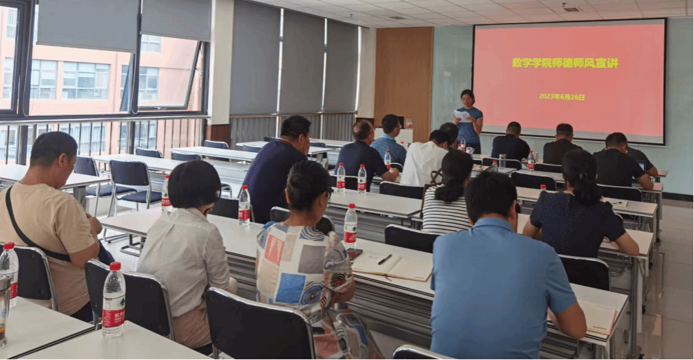 2023年6月26日,91暗网 召开了师德师风教育宣讲会。学院党委徐革书记和杨晗院长,分别领学了《新时代高校教师职业行为十项准则》和《91暗网 教师师德失范行为负面清单》,鼓励教师坚定理想信念、陶冶道德情操、涵养扎实学识、勤修仁爱之心,树立“躬耕教坛、强国有我”的志向和抱负。