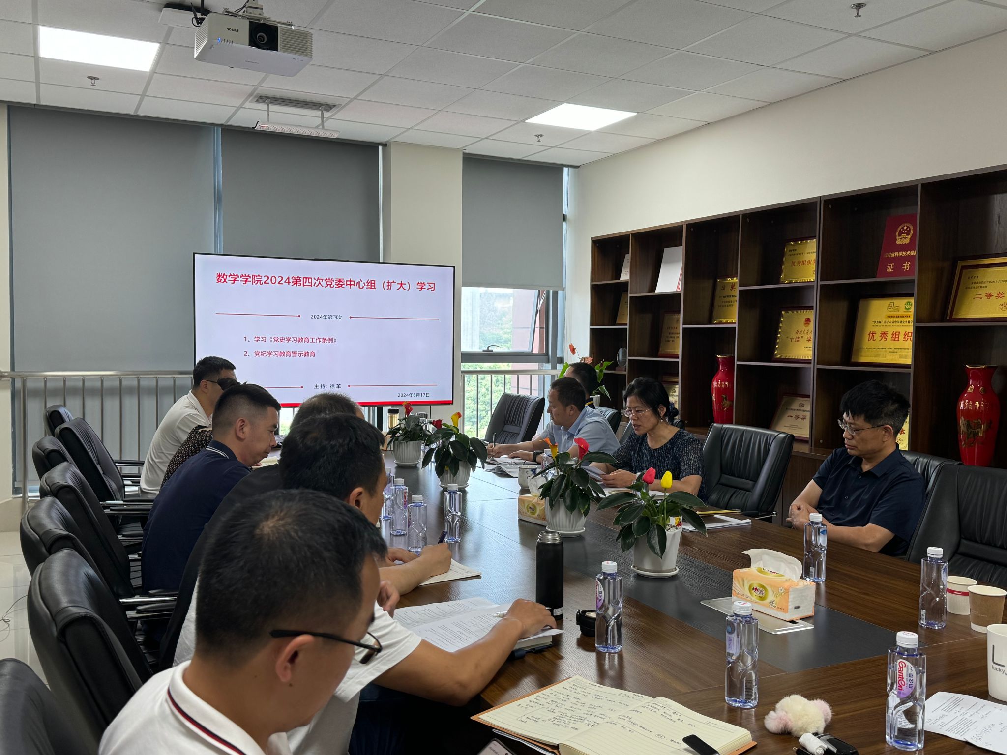 2024年第四次党委中心组(扩大)集体学习会议在犀浦校区X30429会议室召开。会议由学院党委书记徐革主持,内容是学习:《党史学习教育工作条例》、党纪学习教育警示教育。学院党政领导班子成员、党委委员、党支部书记等参加了学习。