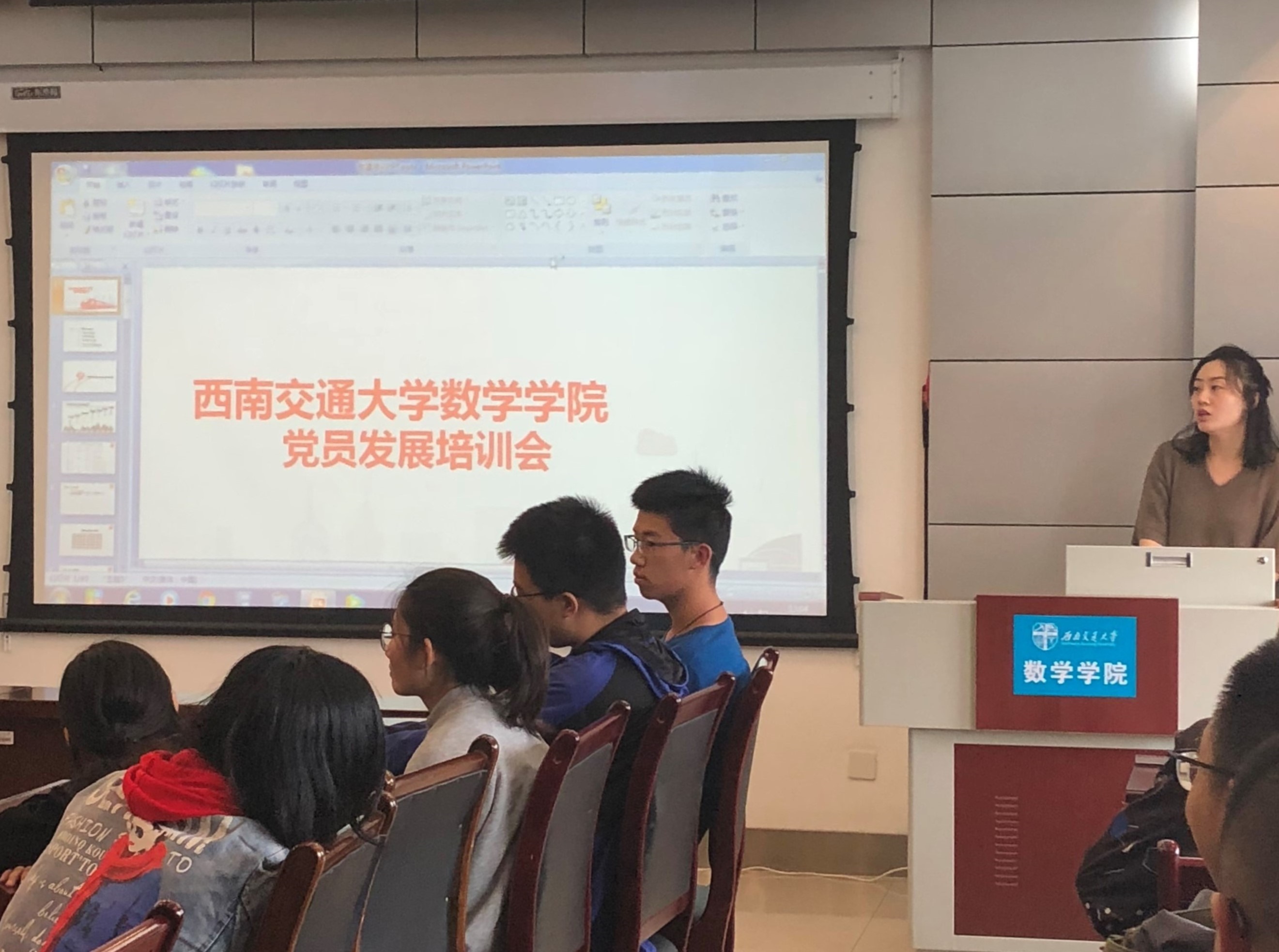 学工办主任兼学生党建指导老师卢怡帆老师主持,出席本次会议的有应数专业党支部书记孙昊,统计专业党支部书记张雁灵以及各班团支书和入党积极分子人员。
