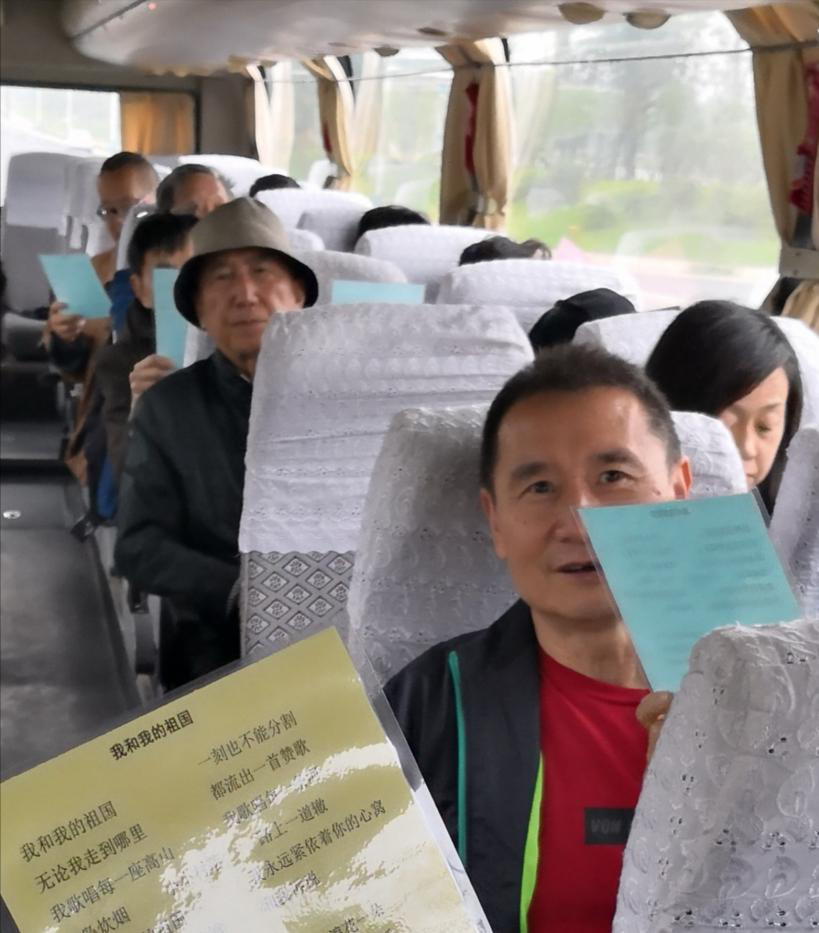 利用坐车时间,支部宣传委员组织大家颂唱“我和我的祖国”,每一位老同志都通过歌声传达着自己对党和祖国的深情和激情。