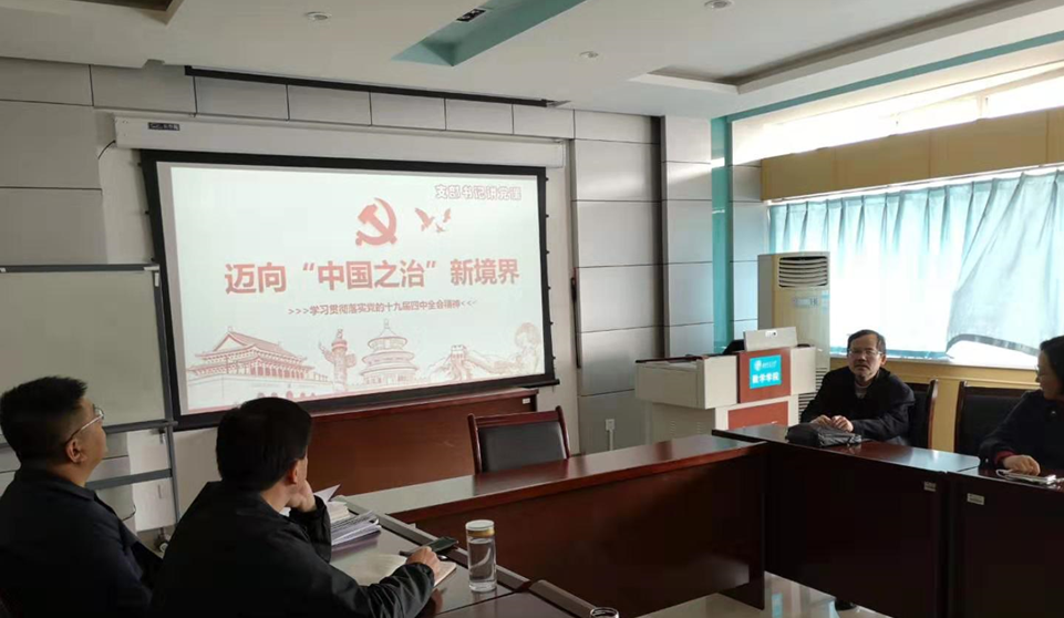 公共数学教学与研究部教工党支部和院机关党支部于X2511开展了第十九届四中全会精神专题学习与研讨活动。活动由支部书记冯颖主持。