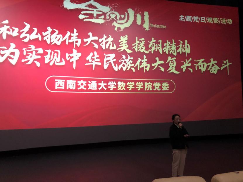 各党支部于C+影城组织党员、积极分子、发展对象等同学观看《金刚川》,举行“伟大抗美援朝精神 为实现中华民族伟大复兴而奋斗”主题党日活动。此次主题党日活动由本科党支部书记胡皓量同志主持,,组织支部全体党员观看抗美援朝影片《金刚川》精彩片段;第二项,支部党员同志谈心得、聊体会、说打算。此次活动不仅丰富了支部党员生活,也使支部学生党员接受了一次深刻的爱国主义精神的洗礼与升华。