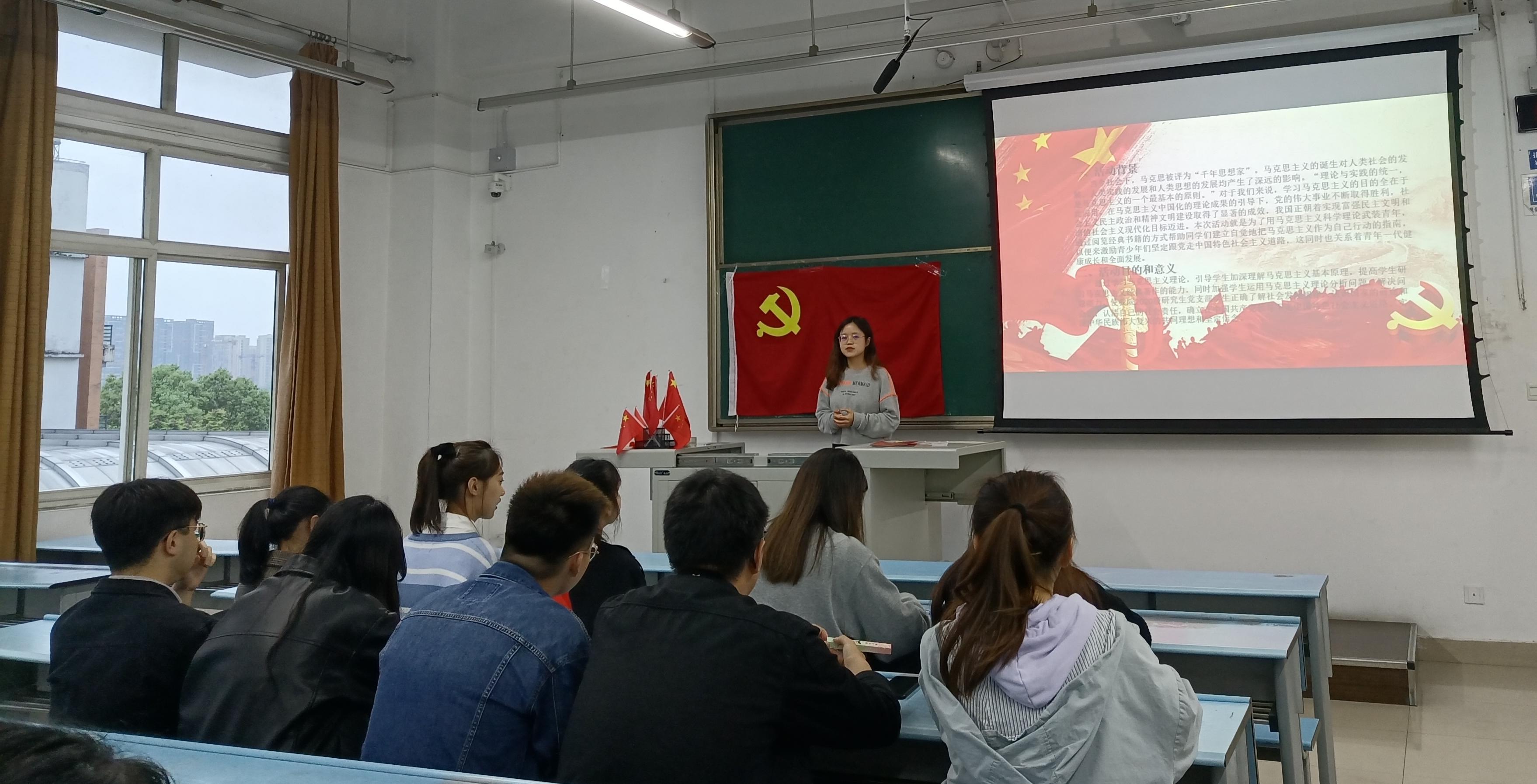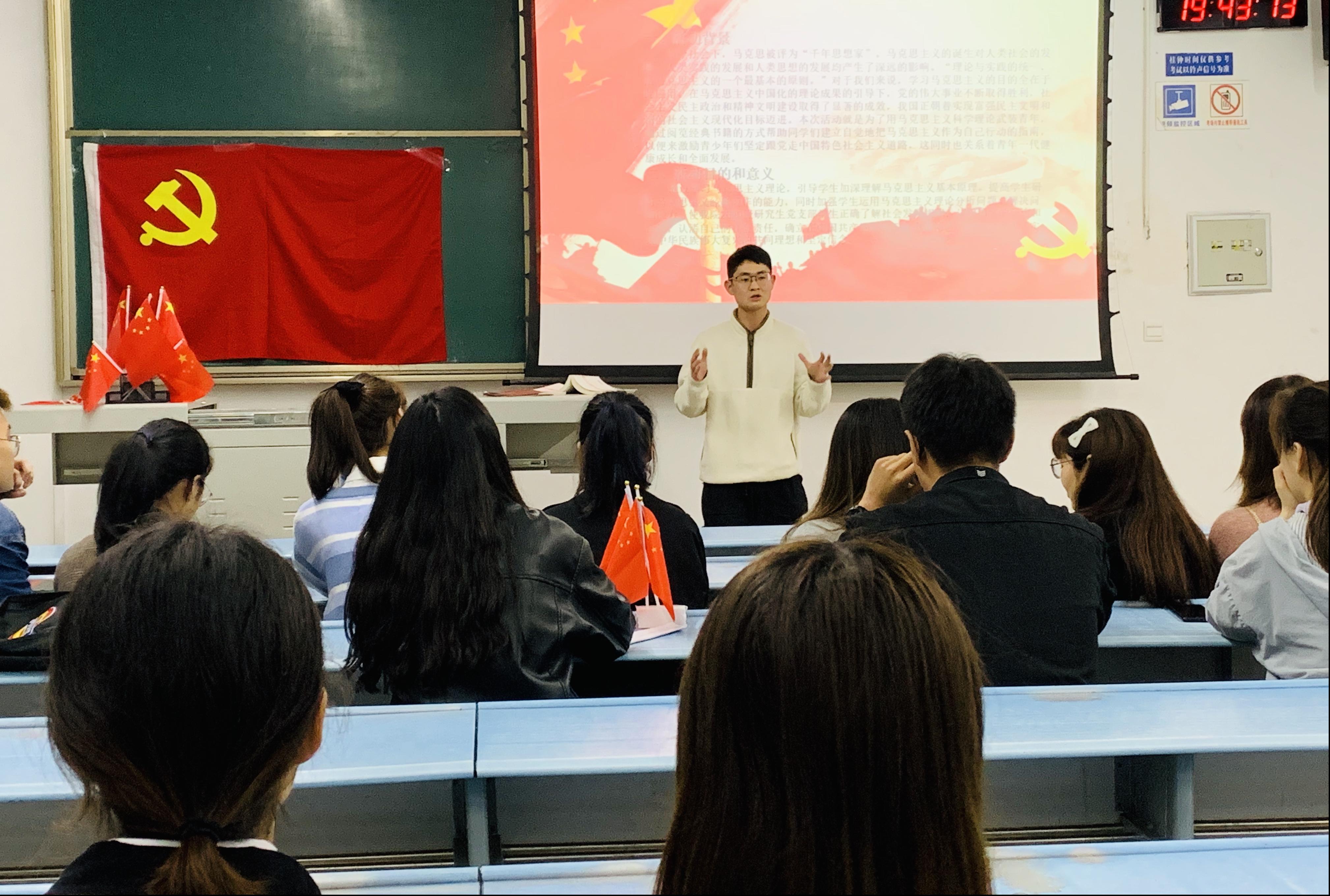 活动的第一部分,朱曼瑶同志引导大家学习马克思主义理论。马克思被评为“千年思想家”,马克思主义的诞生对人类社会、人类实践和人类思想的发展产生了深远的影响。在世界多极化、经济全球化、社会信息化、文化多样化深入发展的今天,我们有必要通过阅览经典书籍的方式,掌握马克思主义立场、观点、方法,提高马克思主义理论素养,这样我们才能提高运用马克思主义原理解决实际问题的能力。
