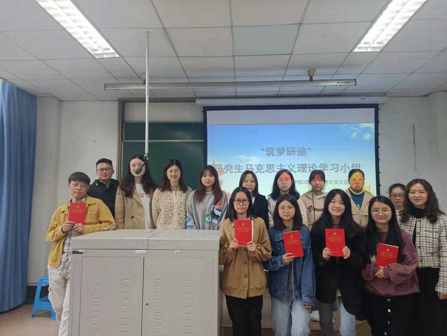 2021级研究生党支部于2021年11月2日上午九点,在J4222教室开展以“筑梦研途”为主题的“领航先锋”工程之“旗帜学习小组”项目活动,活动邀请了负责学院研究生党建指导的邓思然老师现场指导,支部成员全员参与,党支部书记王乐主持。