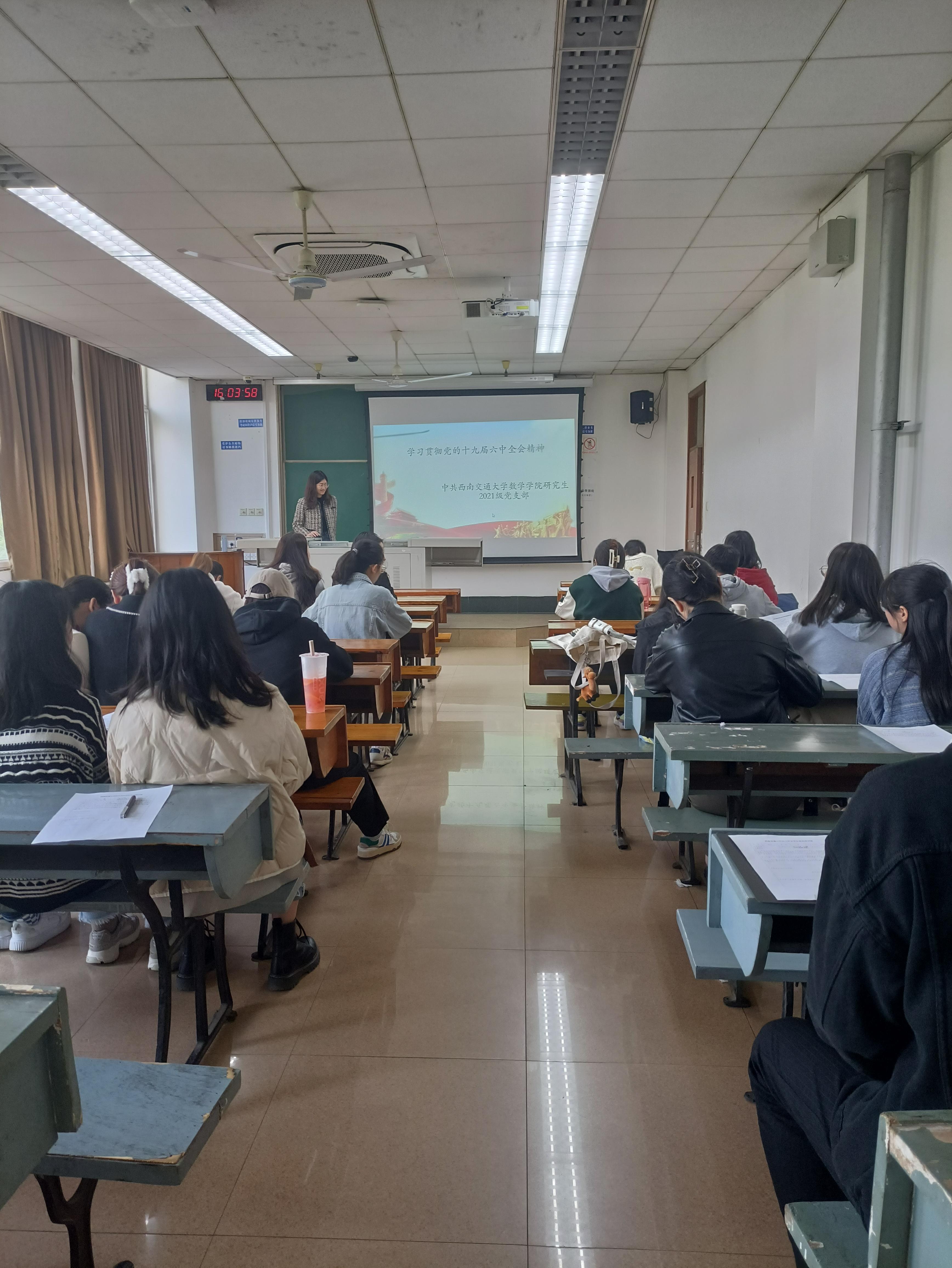 2021级研究生党支部于2022年3月7日下午4:00,在J4322召开党组织生活会暨民主评议党员大会,旨在开展批评与自我批评以及民主评议工作,提高党员的党性修养和思想政治素养。此次大会由支部书记王乐同志主持。