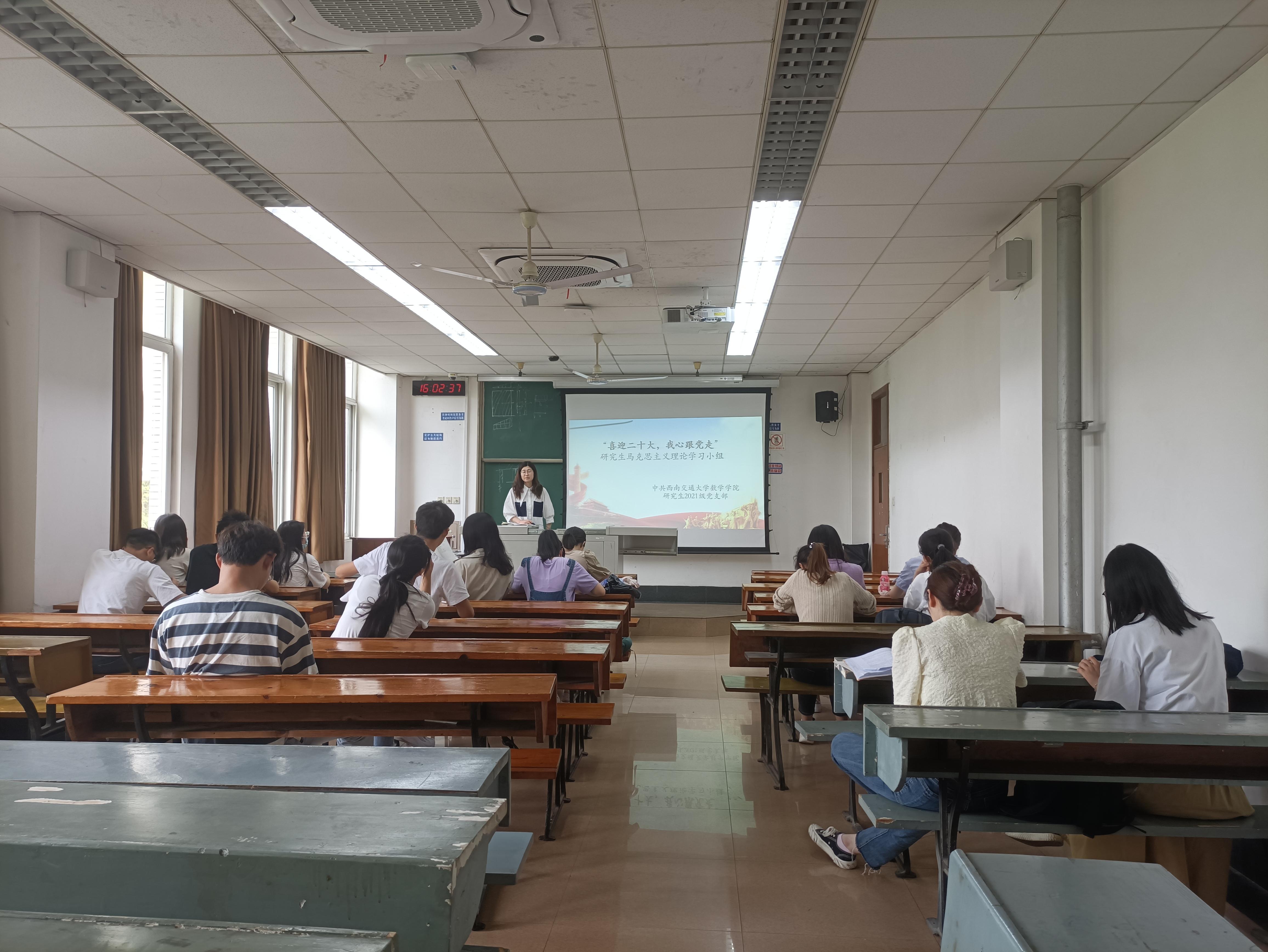 研究生2021级党支部在J4322召开“喜迎二十大,我心跟党走”——“领航先锋”工程之“旗帜学习小组”项目活动,旨在通过马克思主义理论学习,提高党员的党性观念和思想政治素质。此次大会由王乐同志主持。