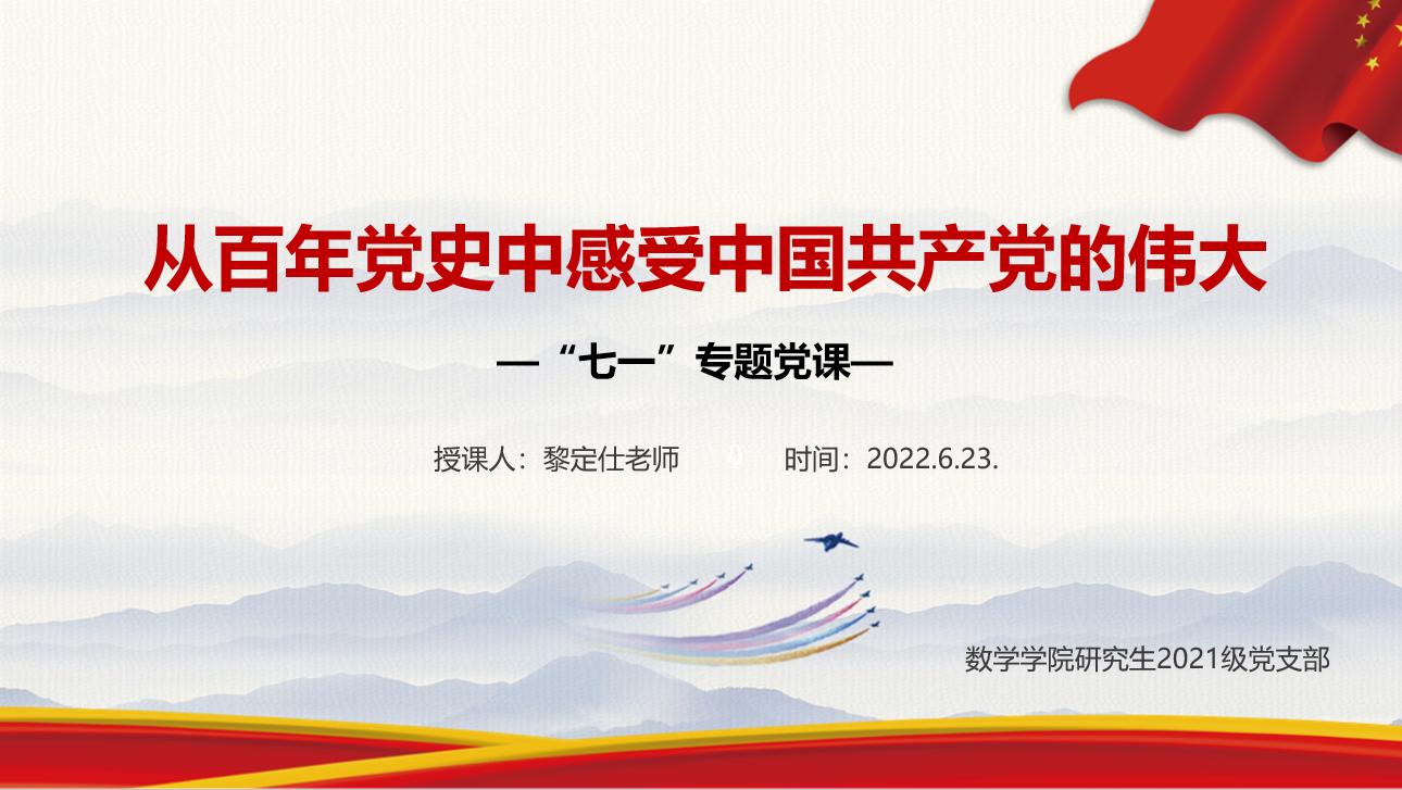 院长助理、党委委员黎定仕老师为大家主讲,本次党课的主题是“从百年党史中感受中国共产党的伟大”。