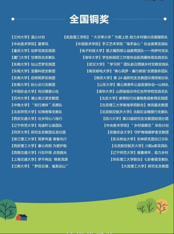 积极参与,共组建八支志愿队伍。其中“行在阡陌 点亮微光”团队获得“知行计划”全国铜奖,“彝乡织梦”团队入围“知行计划”核心项目并入选“榜样100”全国最佳大学生团队,充分体现了数院学生赤诚的助人之心。