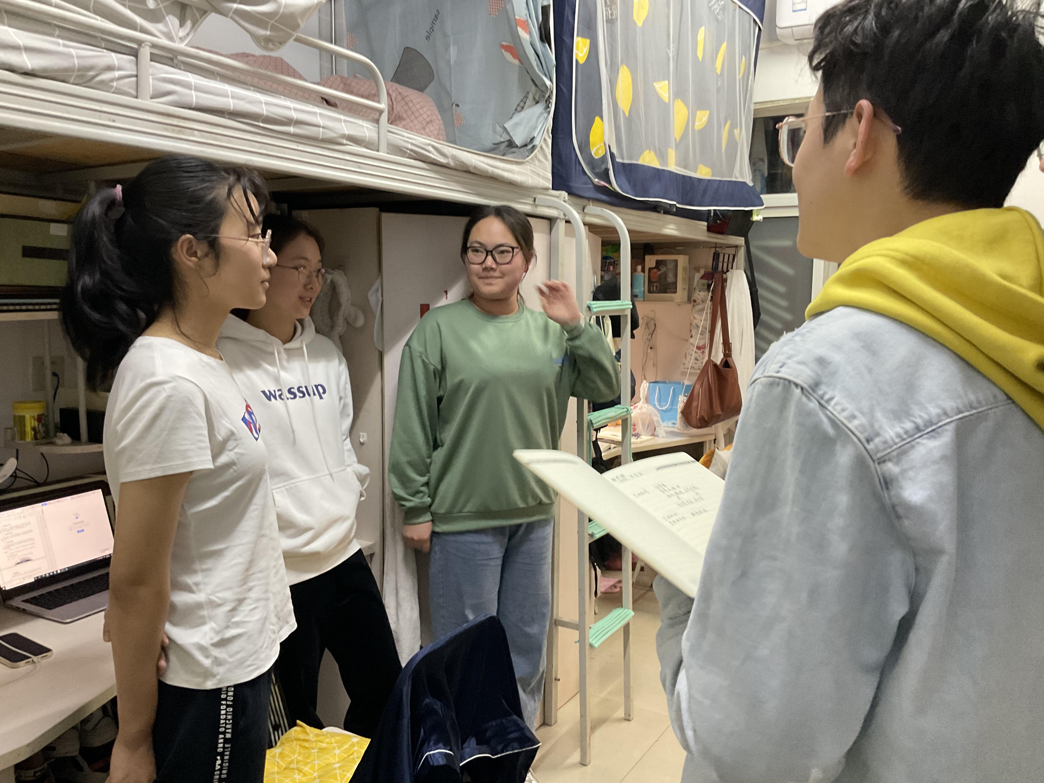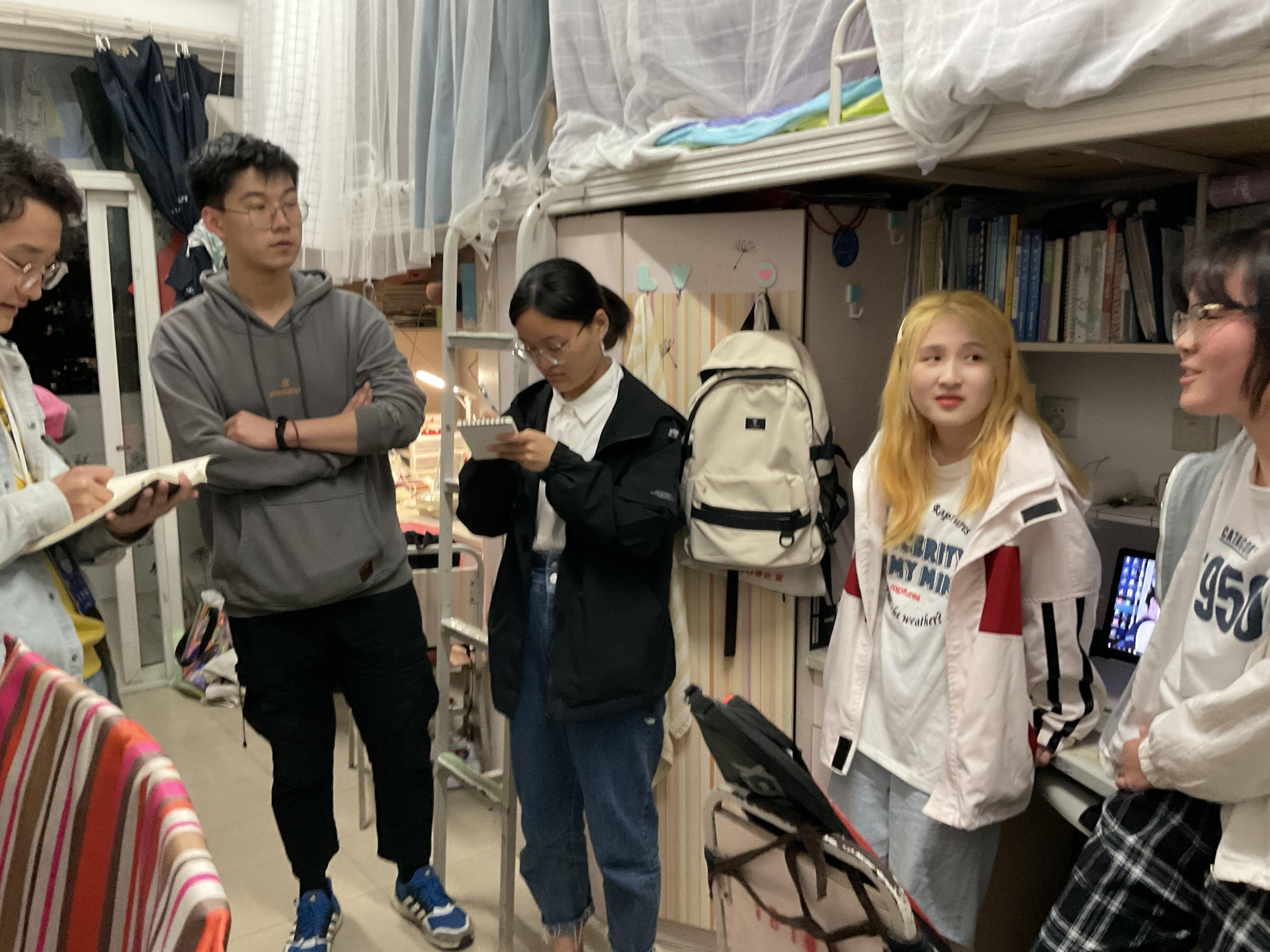在两位老师与同学们的交流沟通中,工作人员记录了同学们的普遍问题,同学们总体上对在学校中的生活与学习条件表示满意,但也有不少同学对食堂饭菜提出建议、也有对宿舍停电时间与宿舍楼自习室环境的改善意见等等。大家反映的问题将在走访人员收集完问题后,会进行整理并处理上报。