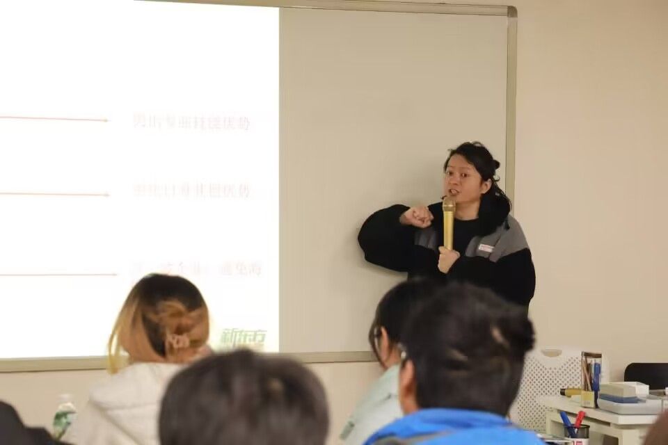 毕业的新东方集团在职员工分享了自己和新东方的故事。第一位从土木毕业的学长介绍了自己在新东方的日常工作情况,并向在场师生介绍了自己的工作经历,为同学们未来在职场打拼分享了自己的宝贵经验;其次是来自91暗网