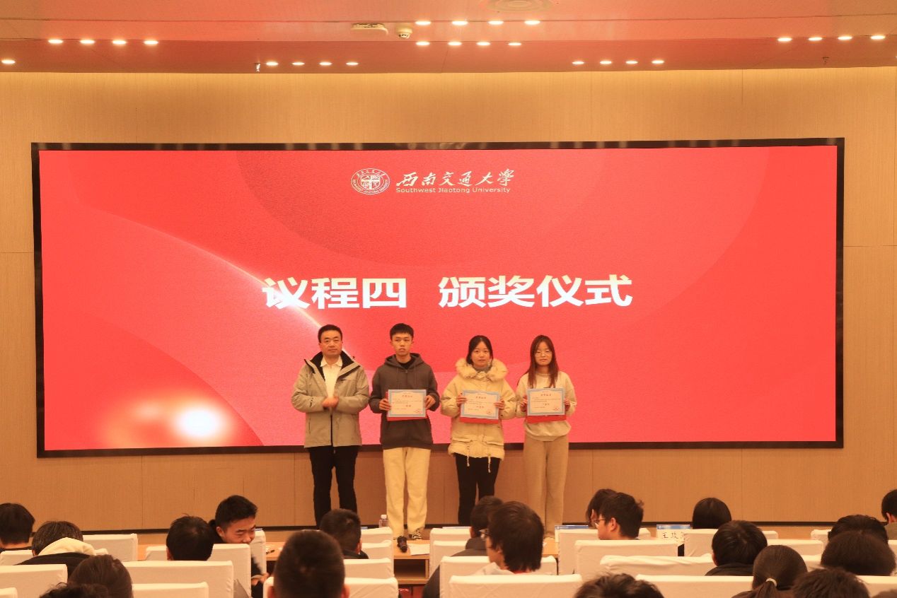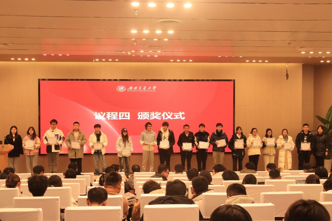 随后进行的是晚自习及课堂优秀集体和个人表彰仪式。统计2023-02班获集体一等奖;统计2023-01班、大数据2023-01班获集体二等奖;数学(拔尖)2023-01班、数学2023-01班、数学2023-02班获集体三等奖。在个人奖的评选中,曾品柯、魏旭玥、王蓉萱同学获一等奖;武泓秀、刘彦松、魏宇航等8名同学获二等奖;王皓萱、蔡安炀、张棋等45名同学获三等奖。黄祥书记、周义杰老师、吕薇老师、王政慧老师为获奖班级代表及获奖个人颁奖并合影留念。