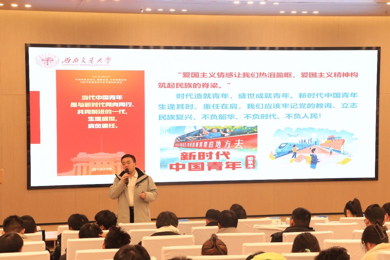 党委副书记黄祥作总结发言。黄祥书记结合自己的亲身经历,鼓励大学生要承担起时代责任,牢记党的教诲,立志民族复兴,不断培养勇气和毅力去战胜困难,为祖国的繁荣富强做出贡献,不负韶华、不负时代、不负人民!