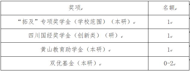 学院专项奖助学金 | 名额 | 奖励金额 | 评选方式 |