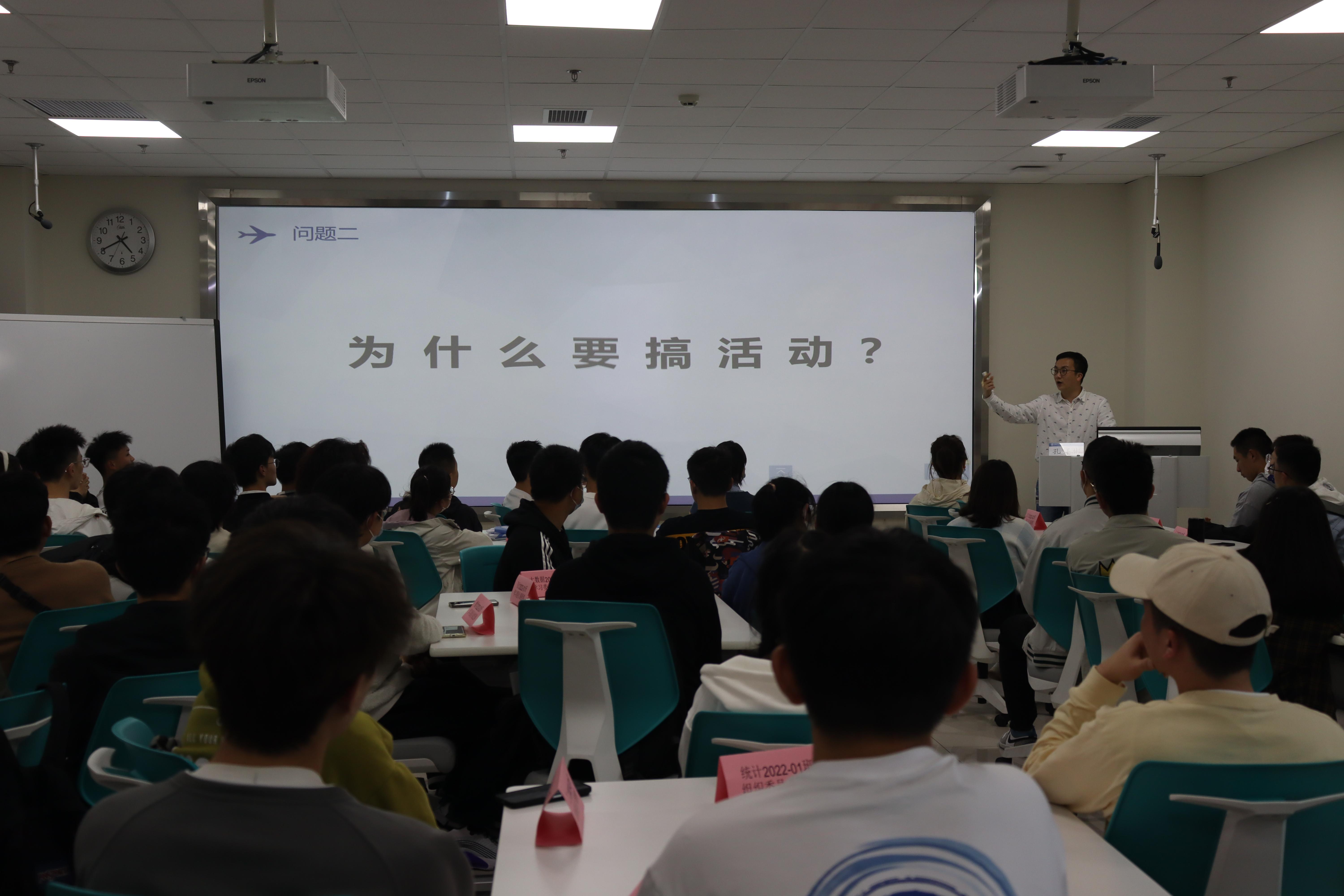 孔老师首先从两个问题——“为什么要当学生干部?”“为什么要搞活动?”出发,深入剖析了往届优秀学生干部的案例,阐述了担任学生干部、搞活动对同学们增长知识见识、增强综合素质的重要意义。