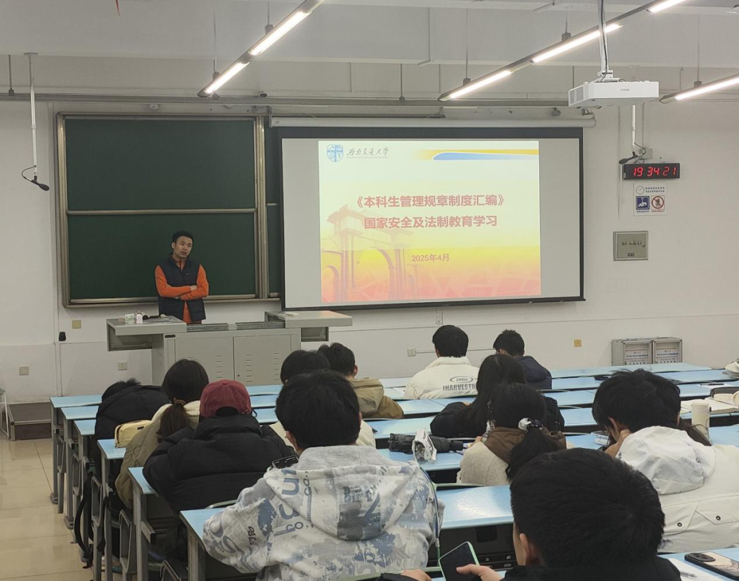 《本科生管理规章制度汇编》进行了系统梳理,详细讲解了学校关于考试纪律、毕业要求等方面的规定,并指出遵守校规校纪、严明纪律的重要性。随后,郭立昌副书记围绕国家安全及法制教育学习展开重点讲解,他强调,国家安全是立国之本,同学们要提高国家安全意识,切实履行维护国家安全的公民义务。