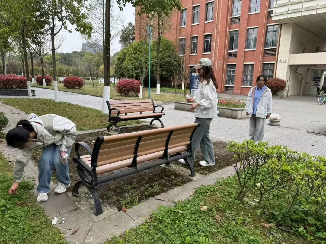 在实践教育环节中,同学们积极参加学院“绿色先锋・清洁有我”志愿服务活动。在同学们共同努力下,校园环境焕然一新,增强了集体凝聚力,激励同学们在未来持续践行环保理念。