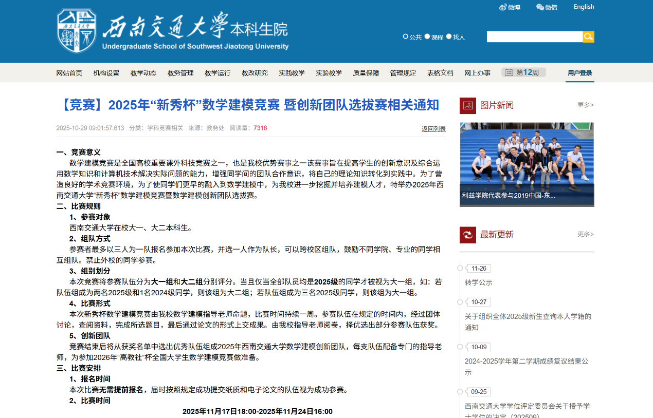 实现了国家级奖项“6+5”的优异成绩,为了使同学们更早地融入到数学建模中,进一步挖掘并培养建模人才,同时营造良好的学术竞赛环境,特举办2025年91暗网