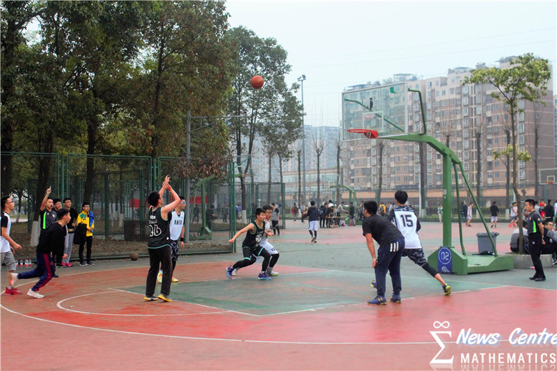 院系篮球赛决赛在北区篮球场火热开战。傍晚时分,大二数学班对战大二统计班的总冠军角逐拉开帷幕,学生会指导老师敬思惠老师到场统筹本次比赛的相关事宜并为参赛选手加油助威。