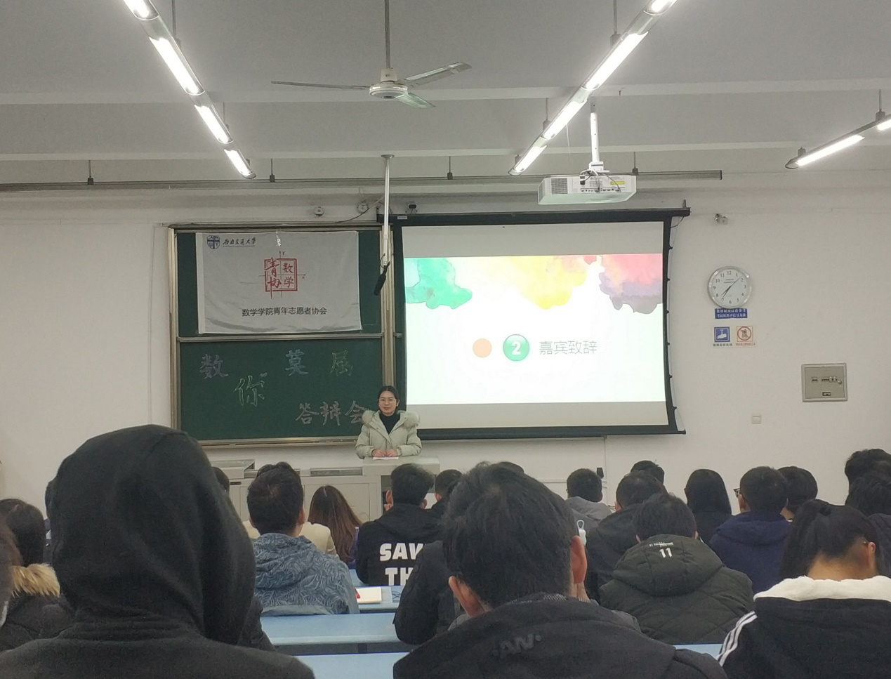 随后,谢童心老师发表致词。她提到此次答辩会是对大一各班团支部的考核,同时也是对青年志愿者精神的宣传。然后,各班答辩主讲人开始上台答辩。