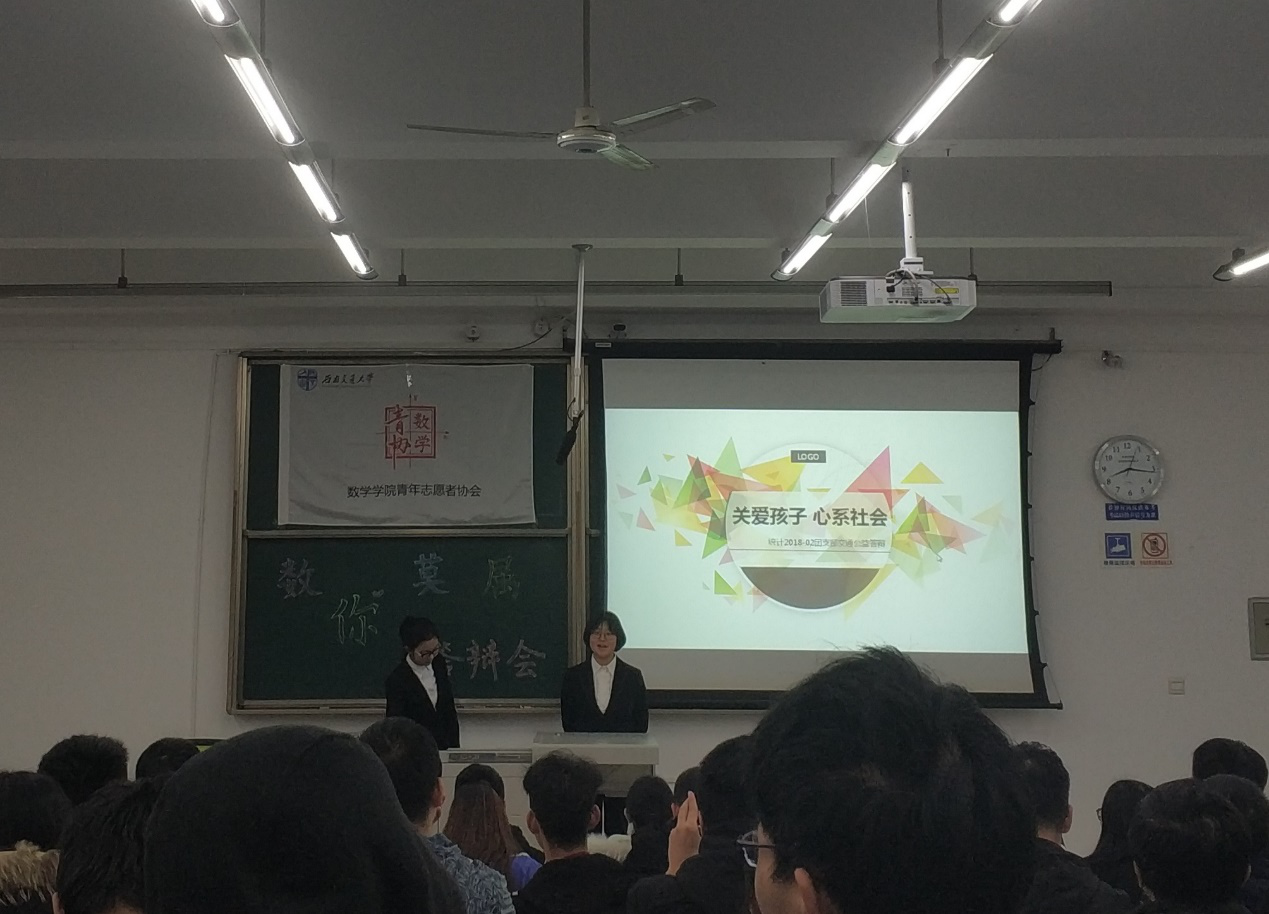 最后是统计2018-02班的邓笛扬和丁钰介绍他们的交通公益活动。“关爱孩子,心系社会”是他们的主题。他们和青协的志愿者们一起去了一所希望小学,向小学生们介绍了高铁知识以及交大和高铁的渊源。活动中,他们通过进行一些小游戏和开展“理想小活动”,帮助小朋友们记住高铁知识,还带去了交大的一些特色元素。