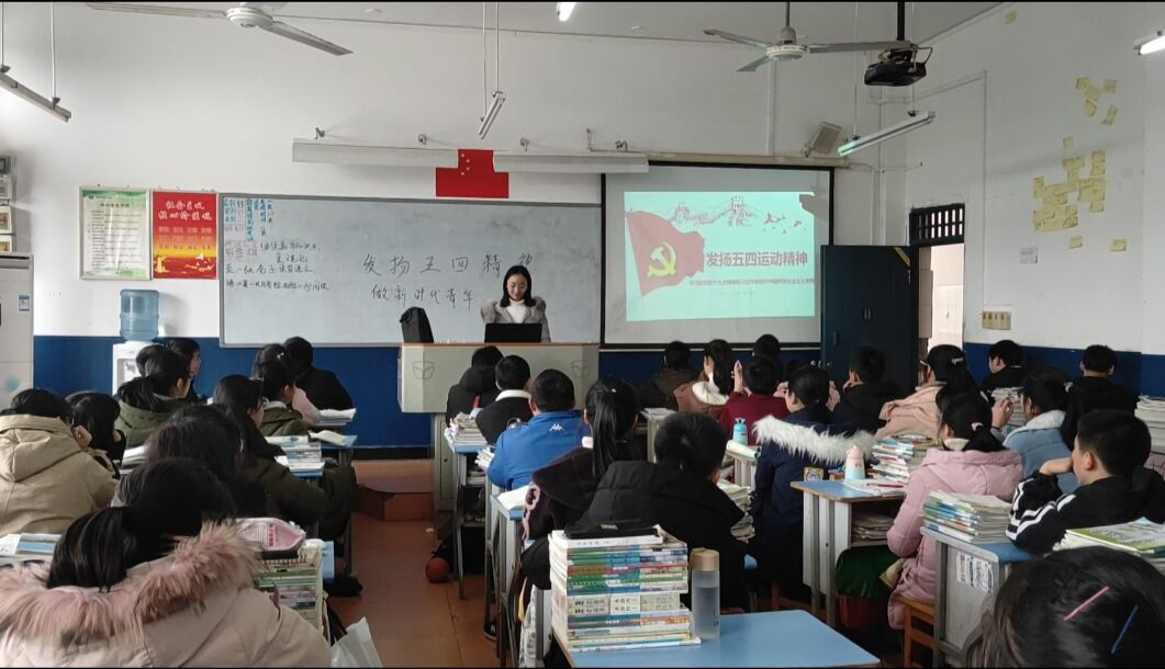 然后,我们与重庆市长寿区长寿中学的校领导进行了沟通,在他们同意我们进校宣讲并征求了他们的意见之后,我们一致认为,当代青少年要从小了解并且学习相关知识,所以我们决定去初中部进行宣讲。接下来,我们对任务进行划分,由徐倩同学负责做PPT,而邓玉瑾同学负责相关文档的制作。隔天,我们兴致勃勃地来到了长寿中学初中部,同学们和老师们对我们表示热烈的欢迎。而且当我们告诉同学们今天的宣讲内容后,大家都表现得很感兴趣。然后,我们以“发扬五四运动精神,做新时代优秀青年”为主题开始进行宣讲,虽然同学们没有系统地进行过相关知识的学习,但是他们在宣讲过程中听得专心致志,非常认真,这给了我们极大的鼓舞。我们的宣讲内容分为四个模块;即五四运动简介、五四精神的内容、学习习近平新时代中国特色社会主义思想和党的十九大精神。