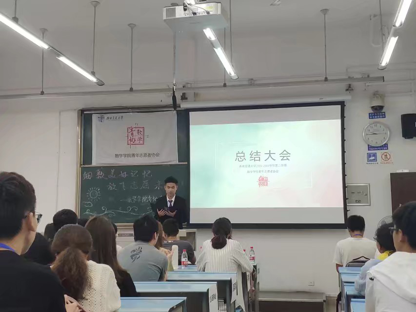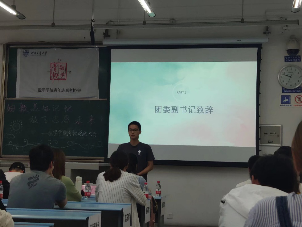 大会第七项,会长总结。张红佳会长对青协这一学期来的各项活动进行全面而客观的分析总结,指出不足并提出改进空间,并对优秀活动的举办表示欣慰和鼓励,同时也将自己对青协的不舍与留念化作对青协的鼓励与期许,希望数学青协这个大家庭能够越办越好,数学青协永远是每一个可爱志愿者的家。