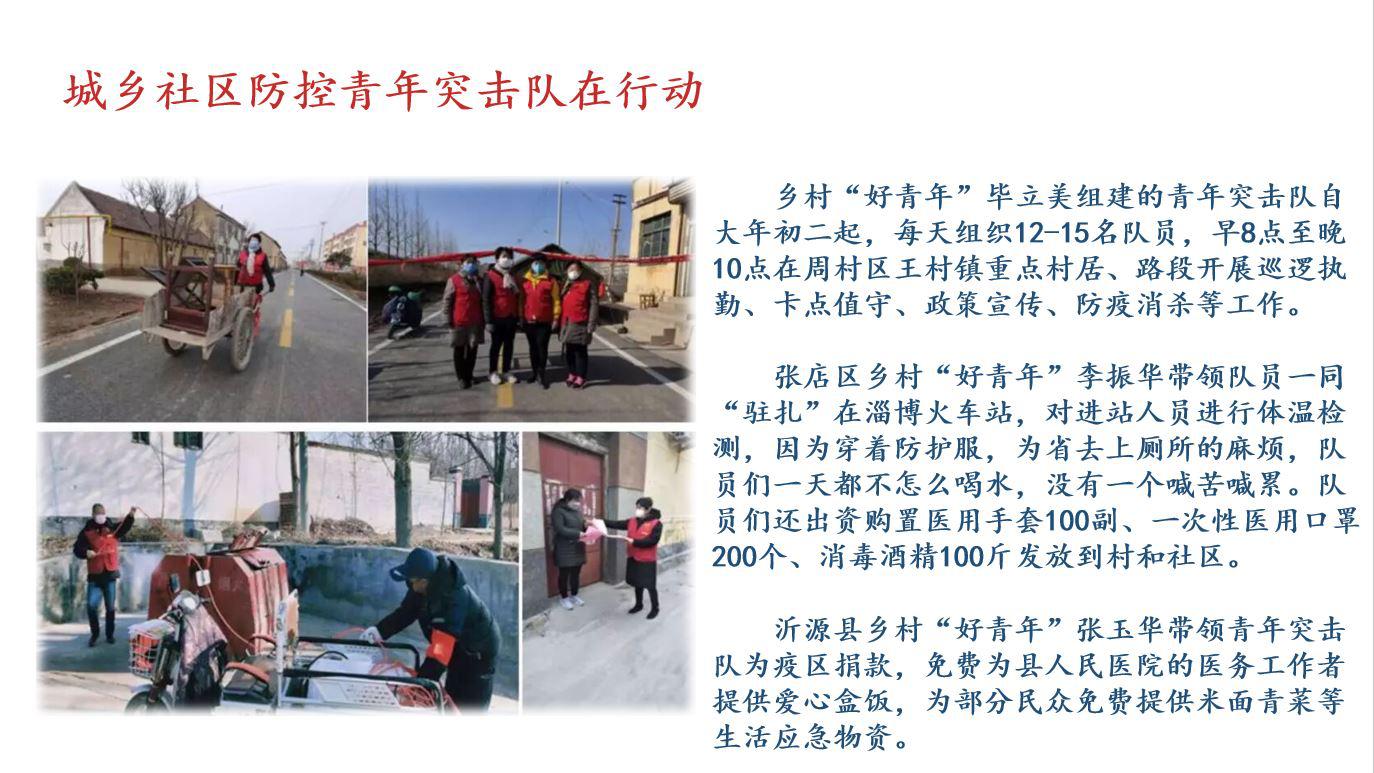 随后,郝文羽就疫情阻击战中共青团员的担当做了讲述。他指出,在党中央的坚强领导下,全国人民正在进行防控新型冠状病毒的人民战争,共青团员要充分开展工作,打好宣传战、服务战、动员战。团员青年们要在没有硝烟的战场后方实打实地进行服务,在城乡社区的引导下,发挥着在城乡基层治理体系中的独特作用,展现出党的助手和后备军的担当和作为,为坚决打赢疫情防控战争贡献青春力量。