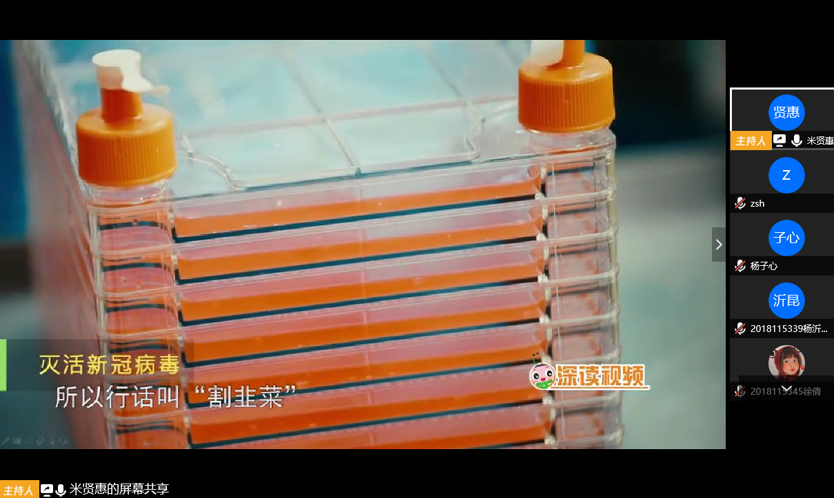 数学与应用数学2018级1班团支部于4月23日下午两点通过腾讯会议成功开展了以“共抗疫情·爱国力行”为主题的线上团日活动。团日活动由团支书米贤惠主持,支部全体团员青年积极参与。支部1+100对接团委干部、学院团委组织部部长邱灵到会参加。