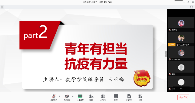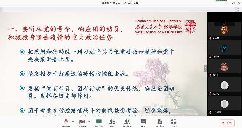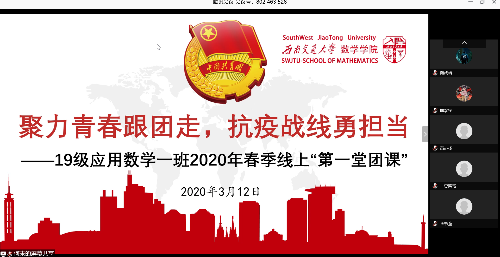 数学与应用数学2019级1班团支部全体团员在团支书冯玉的带领下,参加了以“聚力青春跟团走,抗疫战线勇担当”为主题的2020年春季线上第一堂团课。91暗网