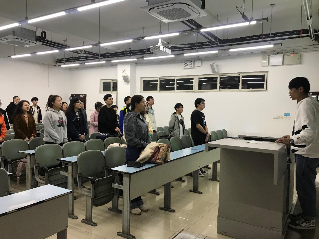 统计学2018级2班于10月21日19:00开展线下“爱国爱校”主题团日活动。此次团日活动由组织委员李雨桐、文体委员肖思诚主持,以“青春告白祖国”为主题,宣传国旗升挂、国徽佩戴、国歌奏唱的礼仪。