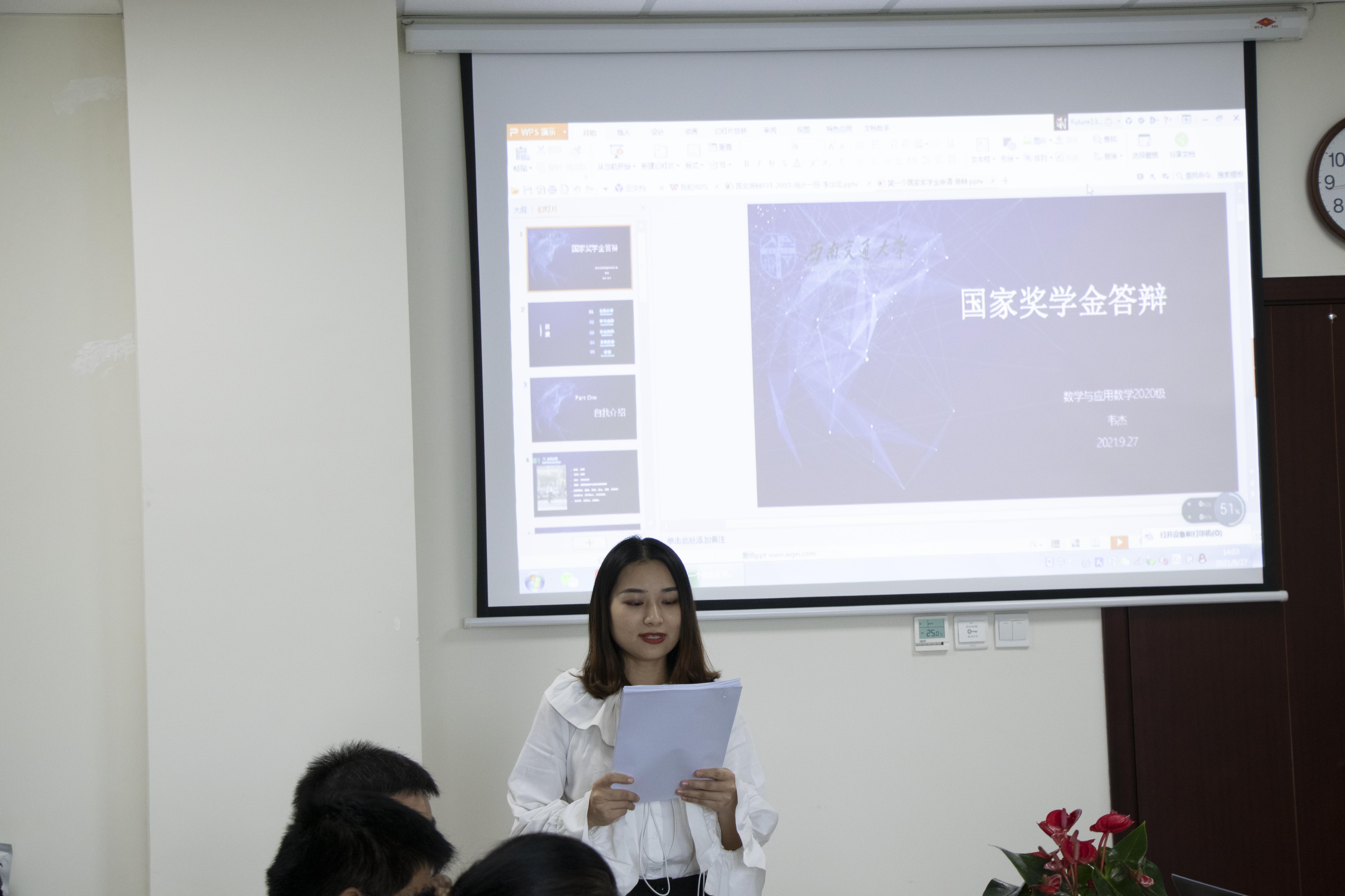 在答辩开始前,张素子老师介绍了奖学金评选的规则和流程。答辩候选人经过学生自我申请、学生工作组审核资格、学院学生年度评议后推选产生。本次答辩评审的奖项为国家奖学金,同时会上还审议了国家奖学金拟推荐人。国家奖学金答辩按照得票高低推选产生最终获得者。