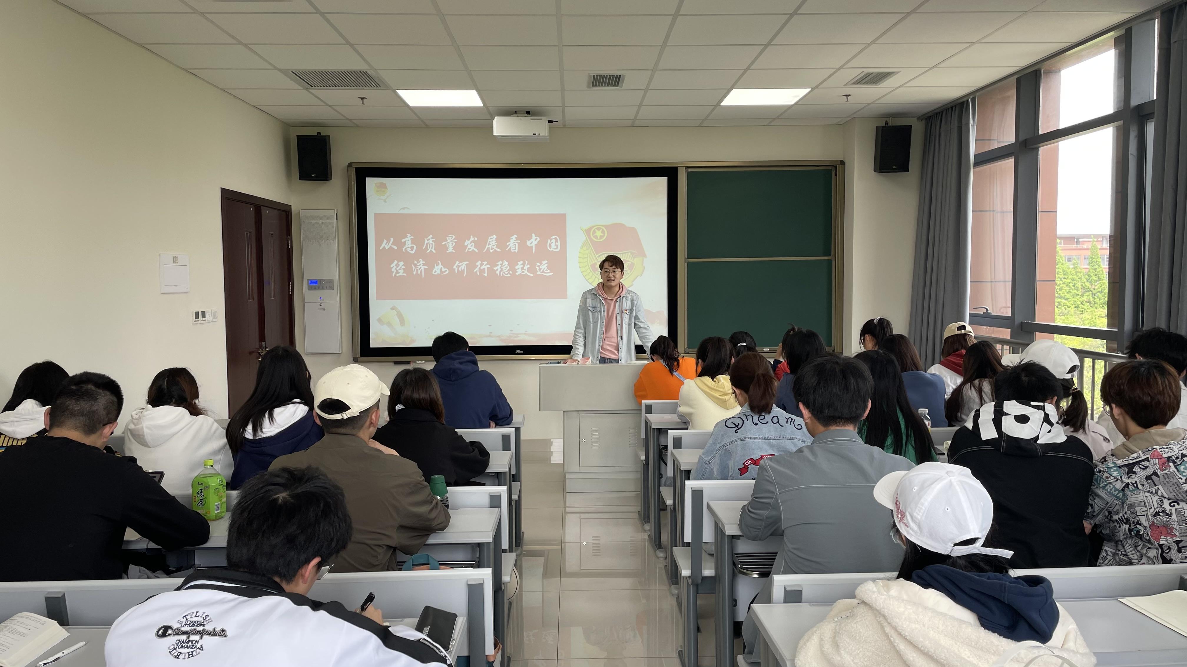 团委副书记(学生兼职)周义杰以“从高质量发展看中国经济如何行稳致远”为主题,为统计学2021级1班团支部开展主题团课。周义杰向支部团员青年分享了《共青团给青年学子们的一封信》,并以演讲、视频等丰富形式介绍了中国经济发展历程。同时,周义杰也号召团员青年心系祖国、志存高远、脚踏实地,用不懈奋斗践行“请党放心、强国有我”庄严承诺,以实际行动迎接党的二十大胜利召开。