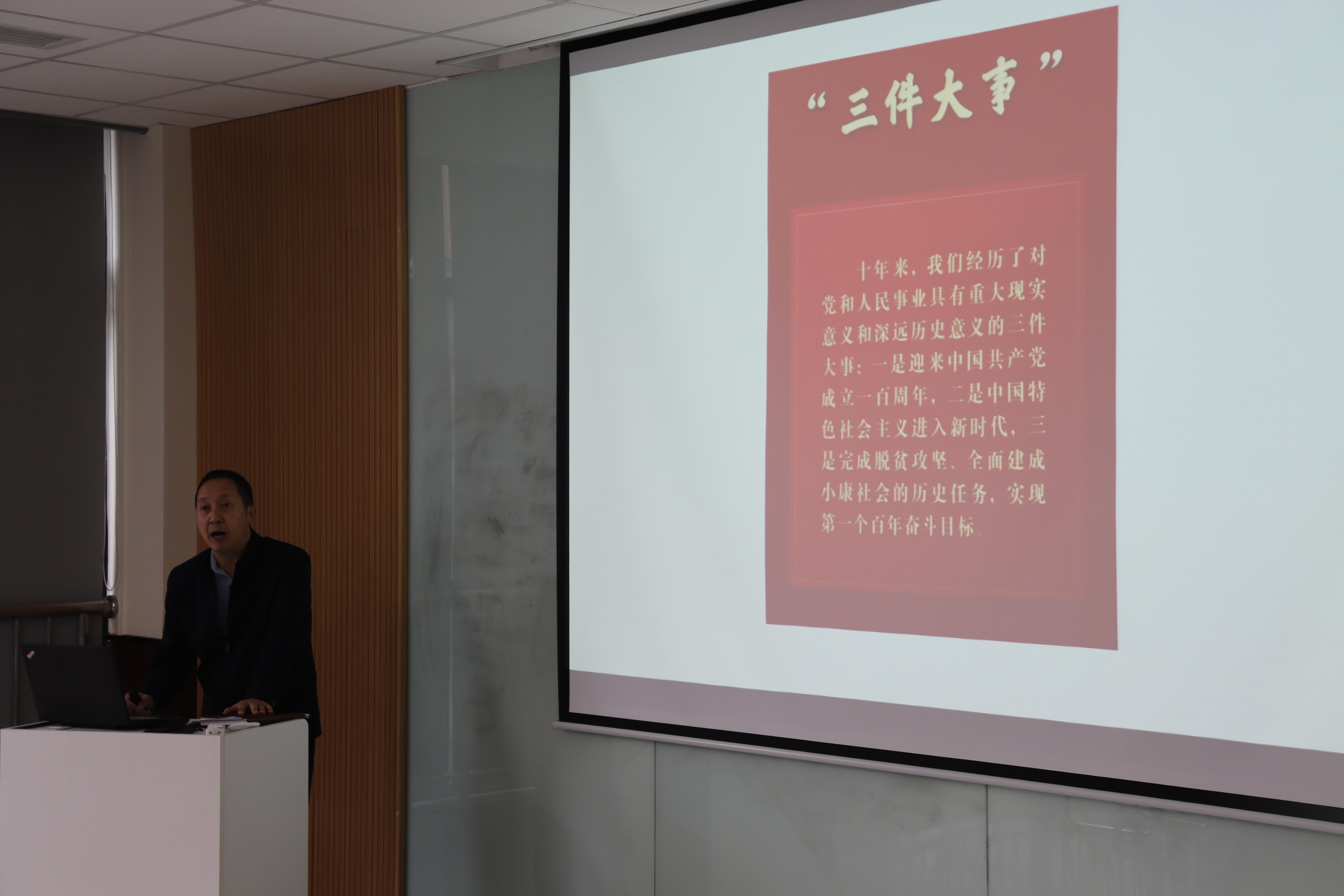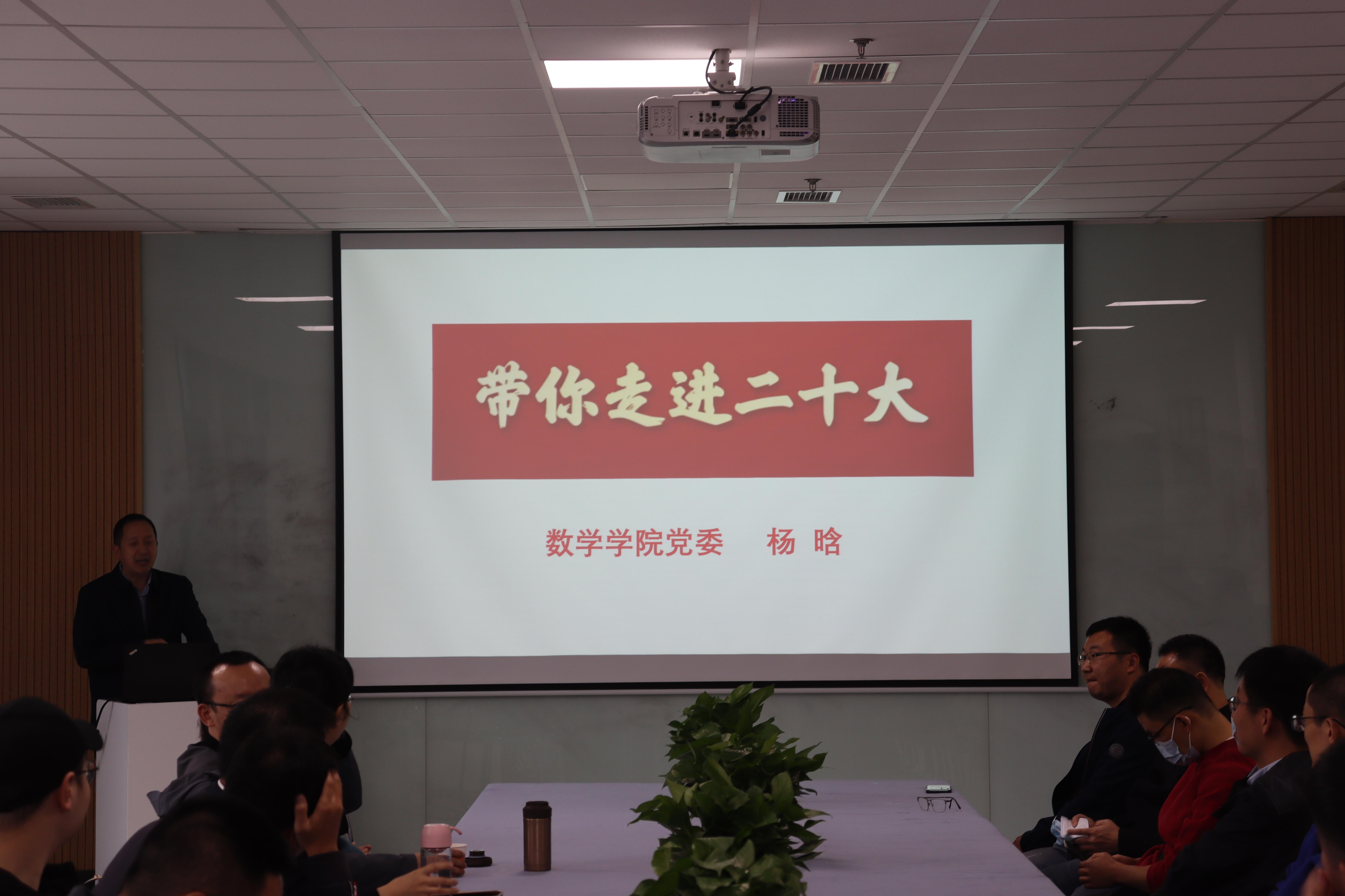 活动伊始,杨晗院长以刚刚召开的二十大为切入点,以数学人的角度来解读二十大的报告内容。在这次讲话中,杨晗院长提到了大会主题、三个务必、三件大事、中心任务等内容,这些均与党的二十大报告所提出的中国式现代化息息相关。杨晗院长用生动的口吻为在座的各位老师讲述了在二十大报告中出现的关于中国式现代化的“五个特色”、中国式现代化的本质要求和如何实现中国式现代化这一战略性目标的内容。除此之外杨院长重点谈到了二十大报告中对教育工作的重视,并以此为切入点,着重强调了高校教师应该将教书育人作为工作中的主要职责。同时,杨院长特别谈到了教育研究部门对基础研究工作的大力支持,他叮嘱各位青年教师作为91暗网 的一员,在基础研究工作方面,要做到不受拘束,自由发展。杨晗院长对二十大报告内容的解读体现出学院心系国家事,肩扛国家责,同时也展现了学院对青年教师的关切。