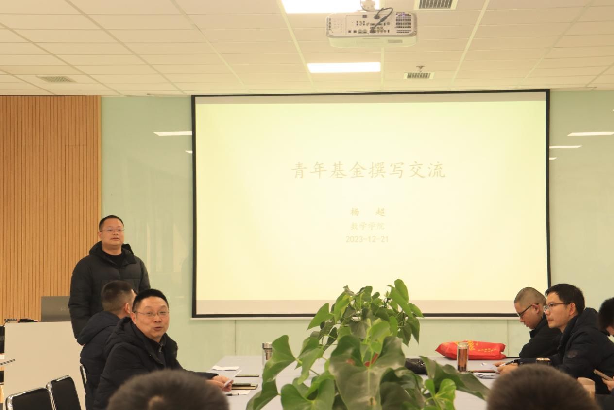 接下来,进行的是国家自然科学基金申报经验交流。杨超老师根据自身申报国家自然科学基金的经验,建议教师们在科研项目申报中把小我融入大我,紧紧抓住国家大力加强和发展基础学科研究的重大机遇。