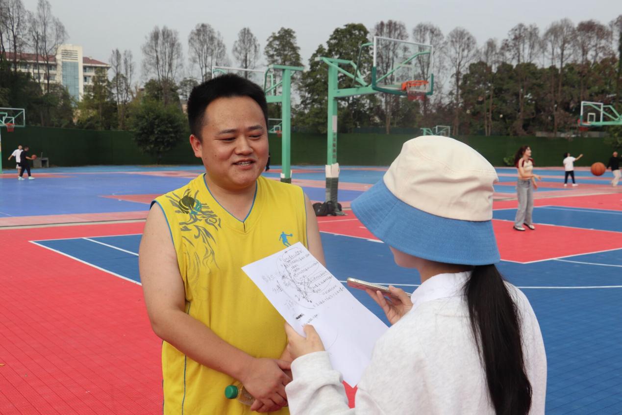 A:是的,这个是需要练习的,平时我们也会一起打打球赛。我也是才开始接触篮球队队长这个位置,希望能把这个工作做好,今天也是为大家服务,希望队伍在接下来的教职工篮球赛能取得好成绩。