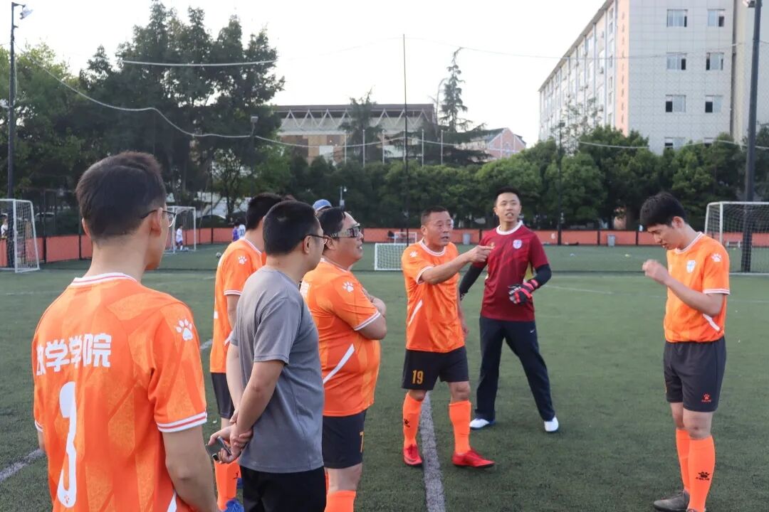 足球队取得院史突破,离不开学院领导和全体师生的支持和殷切关怀。比赛中的剪影令人动容:赛前动员会上大家积极对本场比赛的打法建言献策,团结精诚。丁修勇老师即便身体有伤也主动换上球衣待命。中场休息时,卿铭老师主动请缨为学院贡献自己的一份力量。潘志刚老师、阳锐顺老师即便无法出场,也到场为队友们加油打气。这一幕幕生动的画卷,浓缩出了91暗网