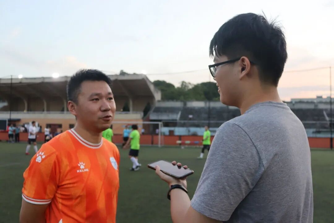 代表队的卿铭老师,他与学院足球队同舟共济,感慨良多:“学院足球队在今年取得的重大发展,离不开老师们的积极参与,张洪钒老师、万美凯老师、张晟老师的加盟有效提高了球队的实力,且各个位置比较均衡,我相信我们足球队未来可期!”