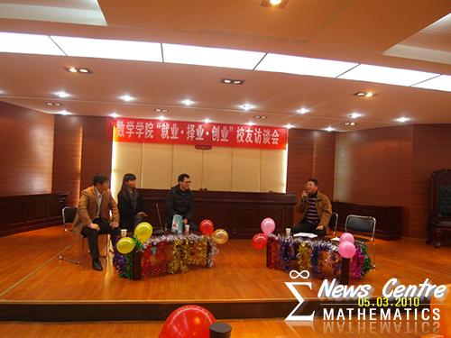 在X5403举办了以“就业·择业·创业”为主题的校友访谈会。学院热诚邀请了西南交大交通运输与物流学院冯勋省副院长、信息科学与技术学院李天瑞教授以及企业家耿建婷女士,三位同是88级数学班的同学。同时91暗网