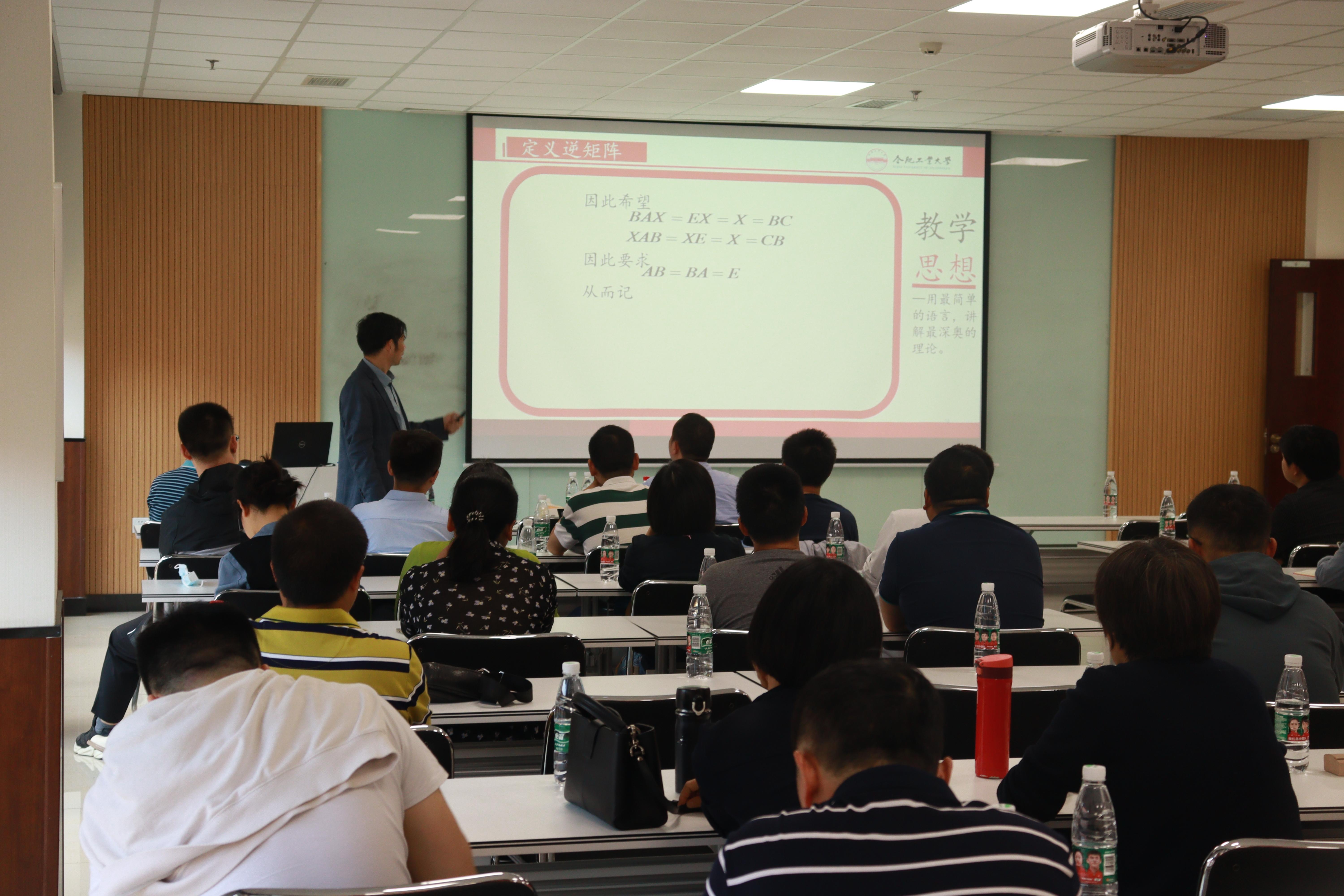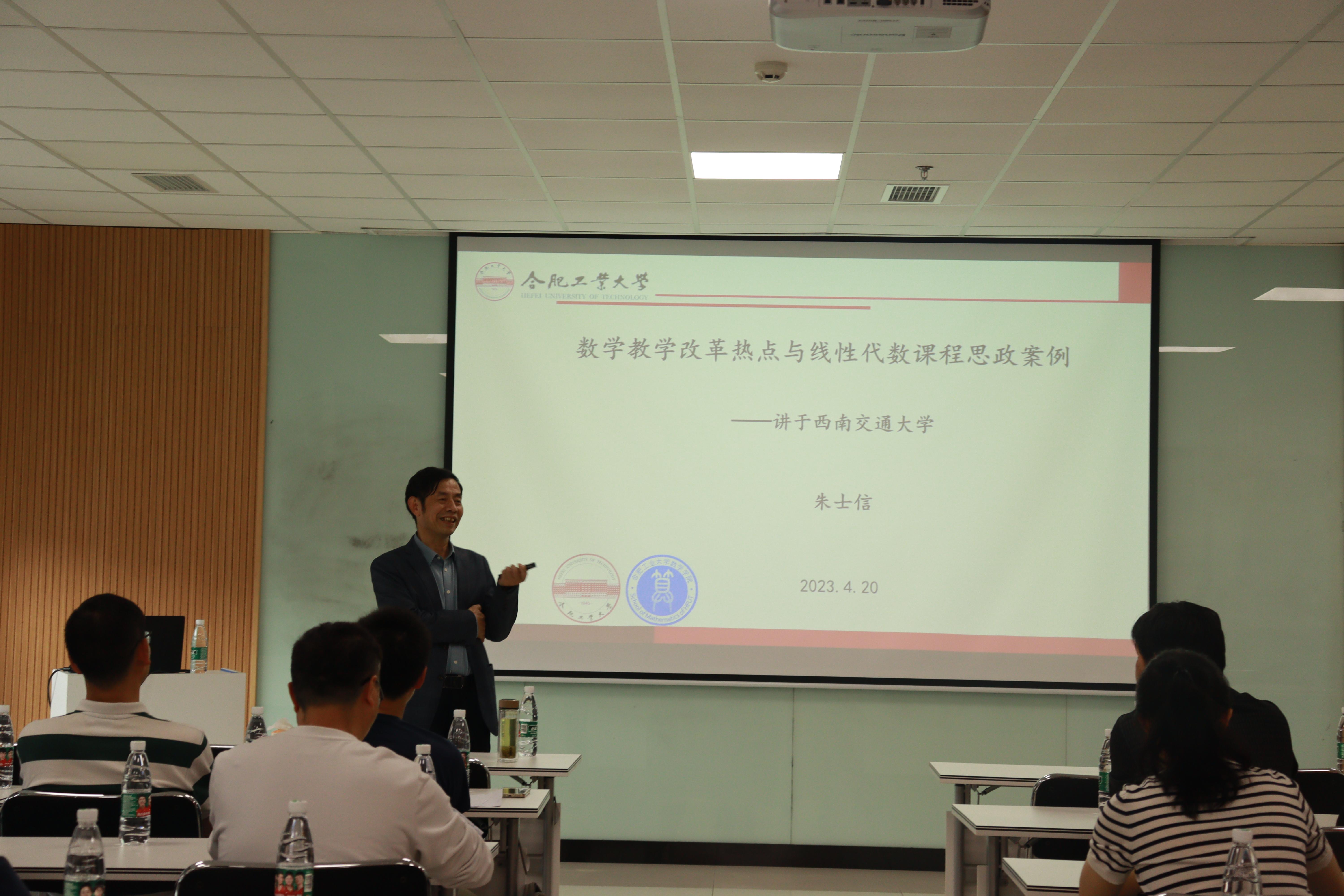 邀请到来自合肥工业大学的朱士信教授进行了一场以“数学教学改革热点与线性代数课程思政案例”为题目的报告。朱士信教授在报告中介绍了近期数学教学改革热点,并分享如何在线性代数课程中开展课程思政,通过两个具体课程思政案例来示范课程思政案例设计的思想。他通过矩阵的线性运算在万里长城图像处理中的应用,介绍了长城精神。朱教授借逆矩阵的运算,介绍华罗庚矩阵形式等式,进一步引申到熊庆来的不拘一格降人才、华罗庚的爱国情怀,以及不拘一格降人才的文化传承。