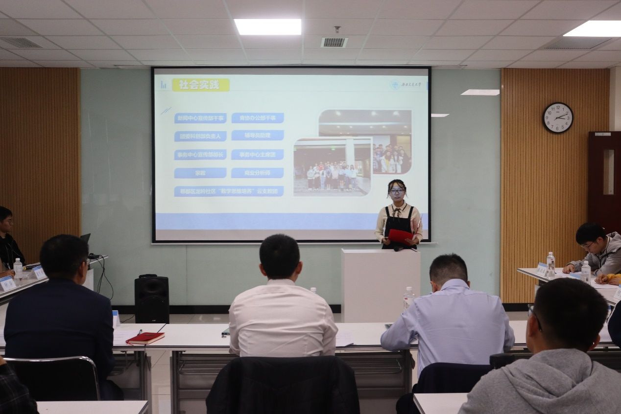 首先,吕薇老师向大家介绍了省级优秀毕业生评选的流程和评审小组成员。随后,汪泽新、韦杰、张诗语、李步云、刘向阳、贾起超、黄崇博、罗梦甜、韩雨航、朱秀玲、李晓冰、张翔、张晓洋、刘柏轩14名候选人依次进行答辩。他们分别从学习成绩、科研竞赛、荣誉获奖、学生工作、社会实践以及未来展望等方面,向评委老师们介绍自己在大学期间取得的收获与成长。候选人们以自己优秀的专业成绩、科研竞赛成果以及丰富的社会实践经历,诠释了“竢实扬华,自强不息”的交大精神。