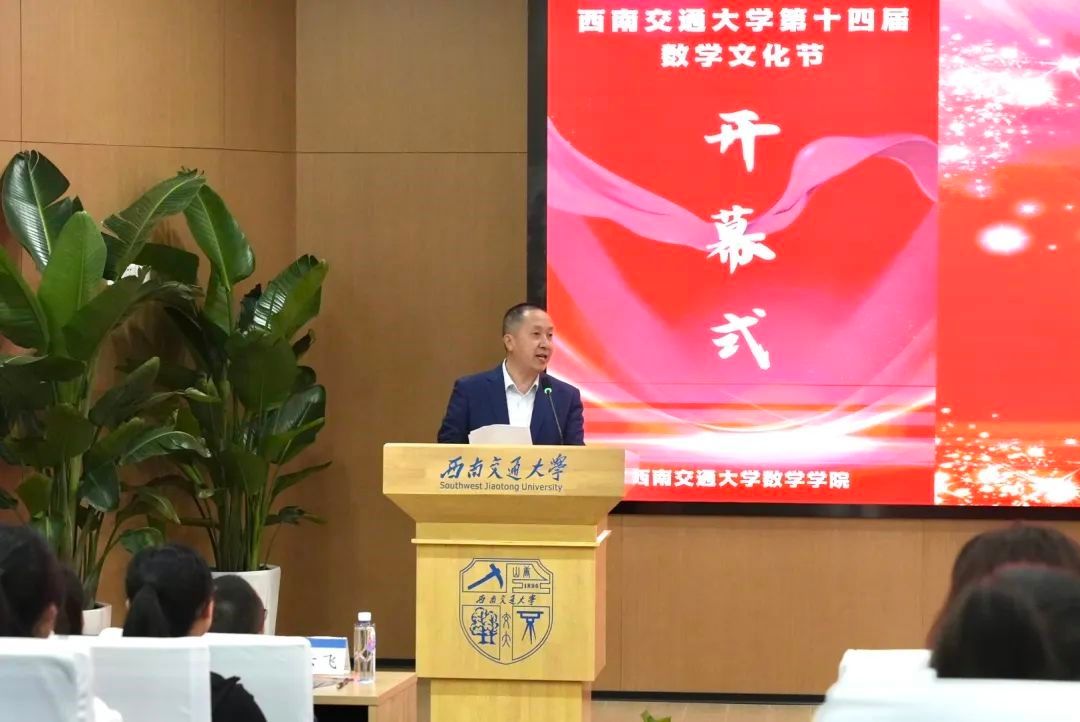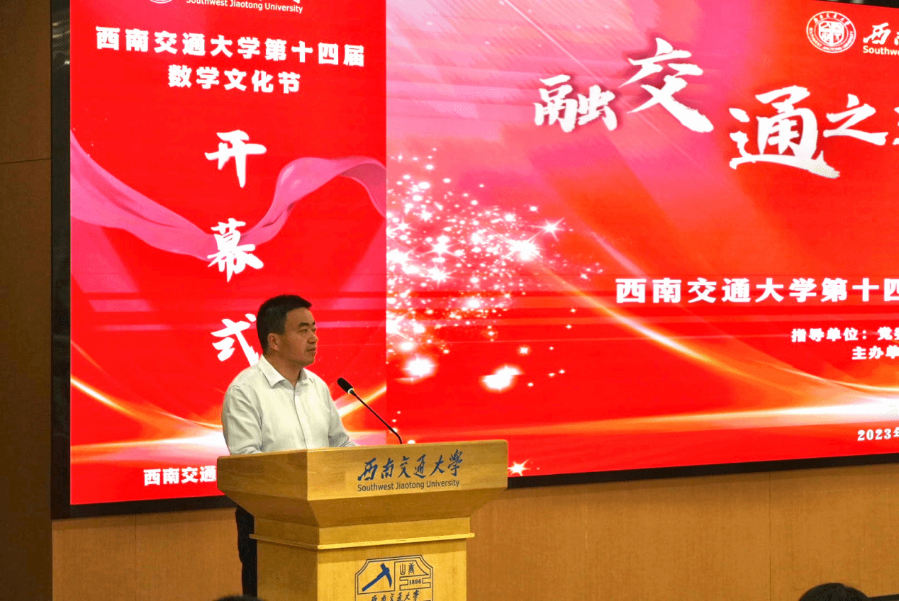 向到会嘉宾表示热烈的欢迎,他指出,数学文化节活动充分结合学校“交通+”“+交通”知识交叉融合的学科背景,为交大学子提供了更广阔的数学学习、交流平台,希望通过活动的形式科普数学知识、传播数学文化、提升数学素养、感悟数学魅力。他表示,此次活动中我们与全省14所高校数学及相关学科学院进行交流,希望借此契机加强沟通合作,共同打造全省范围内有影响力的数学文化品牌活动。