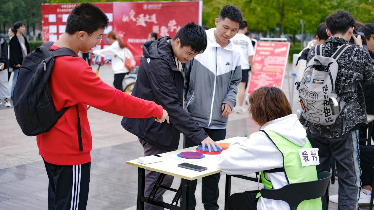 开幕式结束后,与会嘉宾到图书馆前广场参与“数海徜徉”趣味数学游园活动。