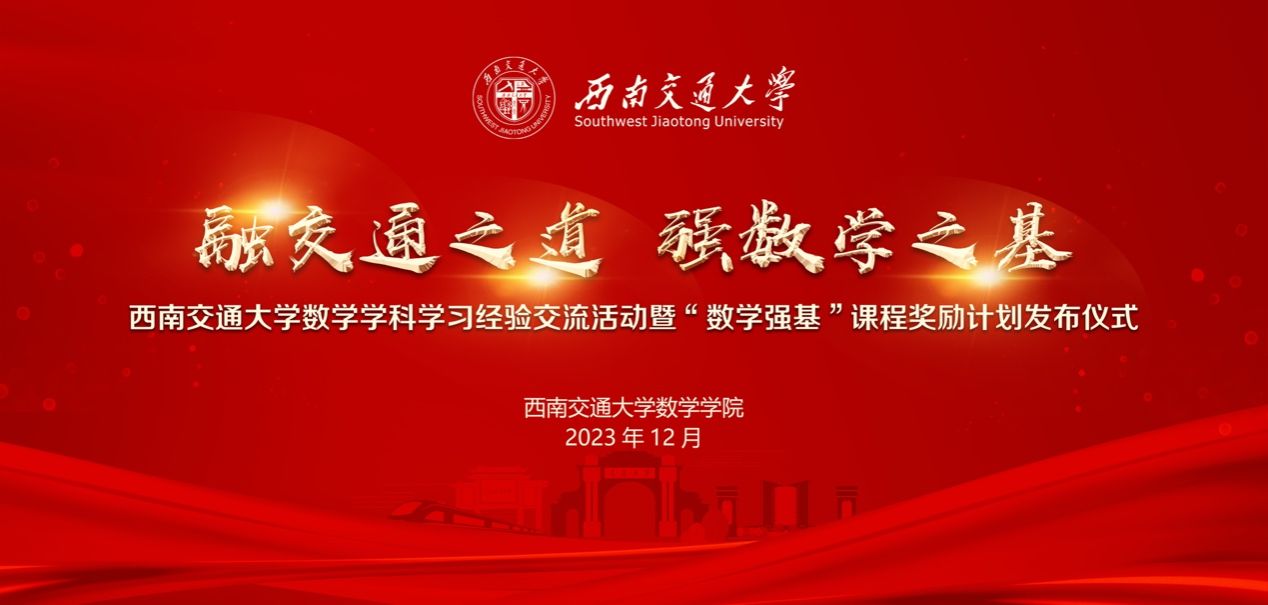 在深化学业指导“X+1”帮扶机制、加强常态化学风建设、促进职业生涯规划“筑梦引领”行动、完善“交通+数学”知识交叉融合方案做出了一系列探索和实践,本次发布的“数学强基”课程奖励计划针对数学公共课程高等数学设立2万元专项奖励基金,对在高等数学课程期末综合测评成绩为100分、99分的同学给予一次性奖励,希望通过奖励计划的实施进一步提升数学素养、贡献数学担当、为新时代人才培养做出新的更大的贡献!