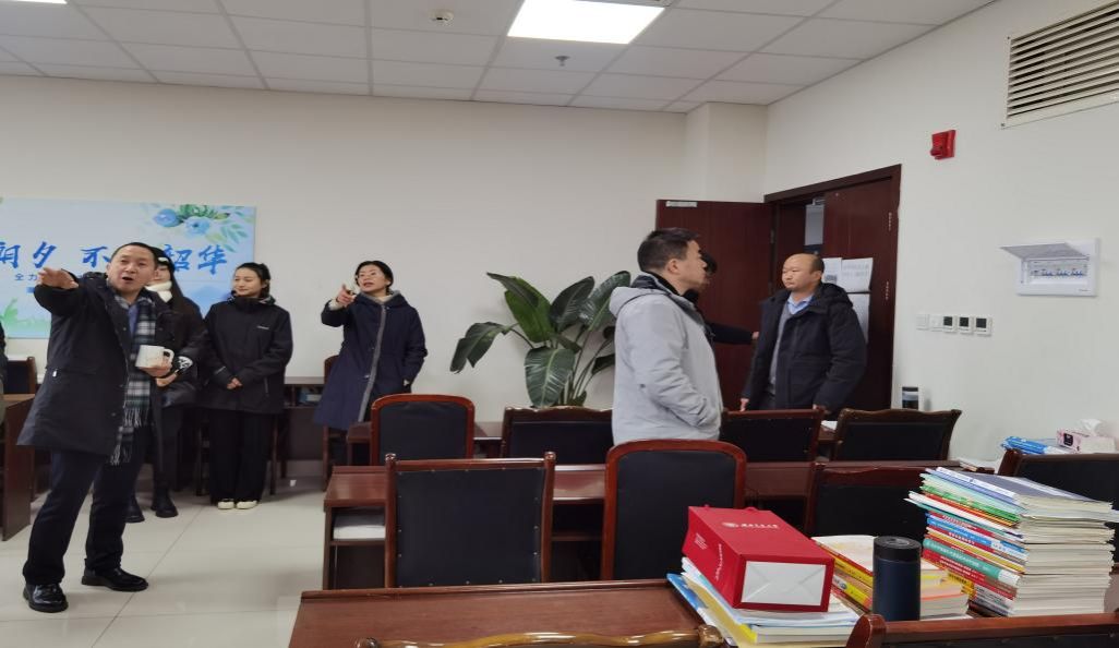 随后,检查组来到教师工作间,就室内的安全卫生与使用管理提出了具体要求:建议制定安全卫生管理责任制度,登记常用教师座次,切实美化育人环境并提高使用效率,徐革书记就检查工作过程中发现堆放的部分报废家具要求本着厉行节约的原则做好报废环节的账物同销等细节。