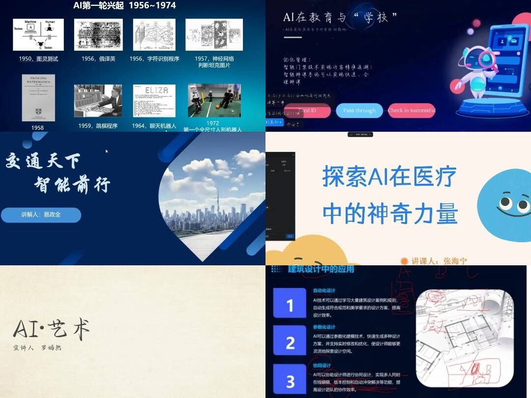 为了使营山中学的同学们能以开放的心态迎接AI时代的挑战与机遇,实践队以“AI”作为主题,开设AI综述、教育应用、交通拓展、医疗应用、艺术助力和建筑优化共六个方向的课程。同时,成员们借助交大数院平台并结合自身专业优势,开展“走进交大,探索交大数学系”课程。