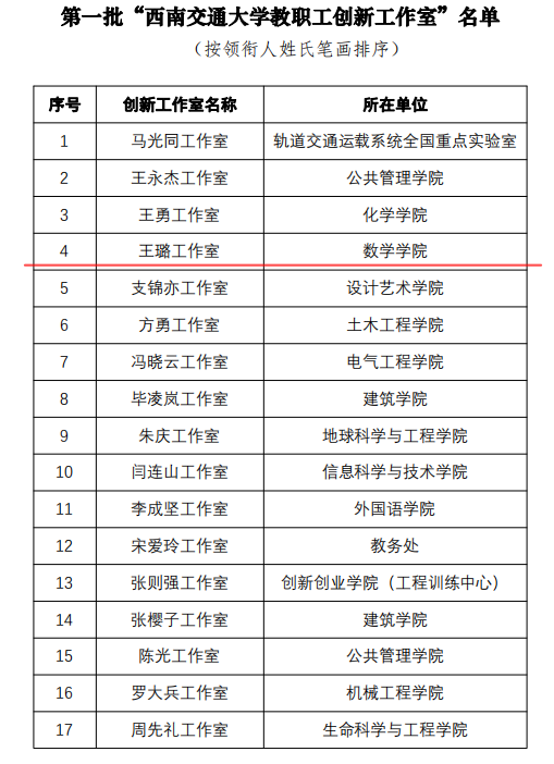 教职工创新工作室”,我院王璐教授所率领的数学建模教学创新工作室顺利进入首批名单。